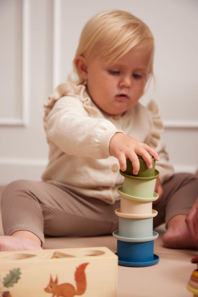 Ustaw kolorową wieżę z miękkich kubeczków Filibabba, a potem zburz ją, i od nowa!