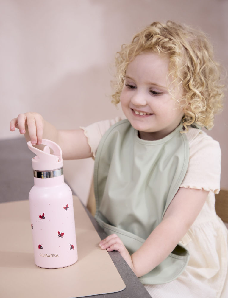 Śliniak Filibabba wykonany został z poliestru z miękką powłoką PU, dzięki czemu jest wodoodporny i można go łatwo wytrzeć wilgotną szmatką.