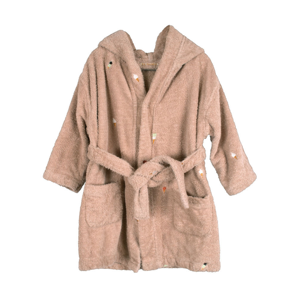 Po kąpieli najlepiej otulić się miękkim, puszytym szlafrokiem. Szlafrok został wykonany z najwyższej jakości bawełny organicznej z certyfikatem GOTS. Dodatkowo został ozdobiony haftem w lody. Z przodu posiada dwie duże kieszenie i wygodny pasek.