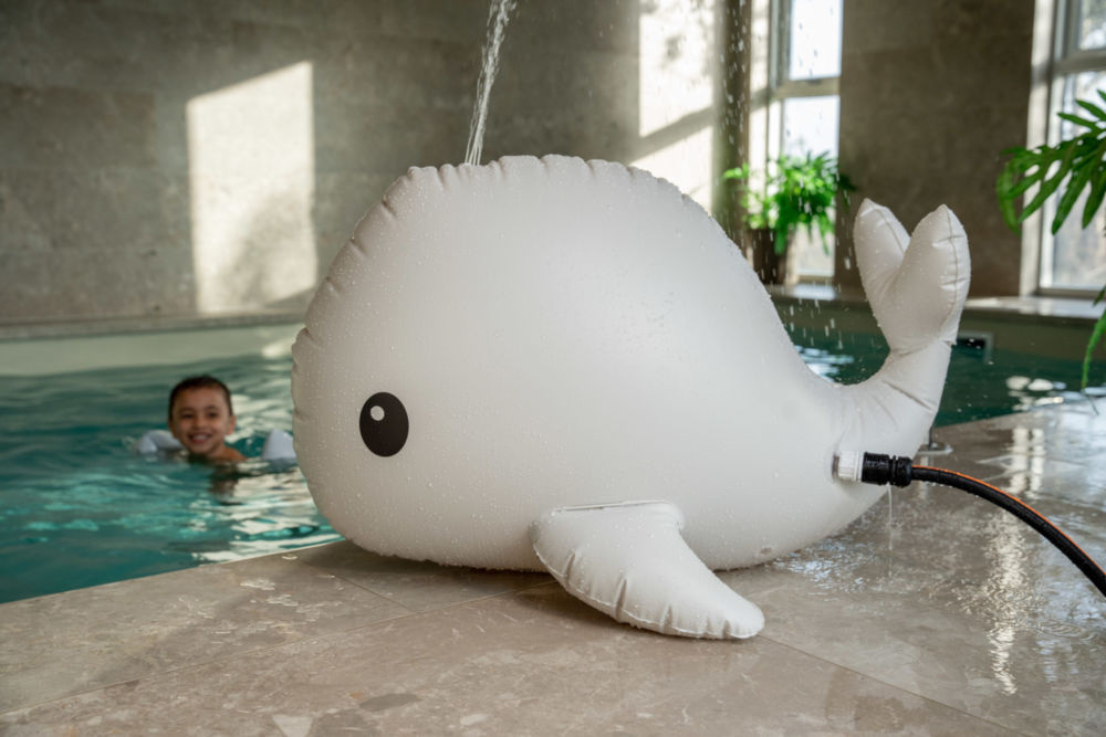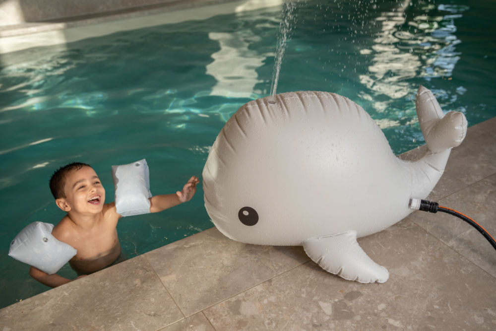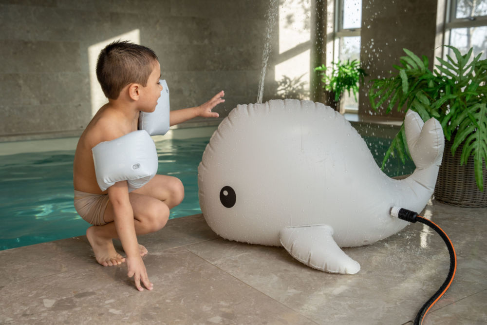 Wystarczy podłączyć go do węża ogrodowego a zacznie wesoło tryskać wodą. Takie wielorybie ochłodzenie to świetna zabawa w ciepłe, letnie dni.