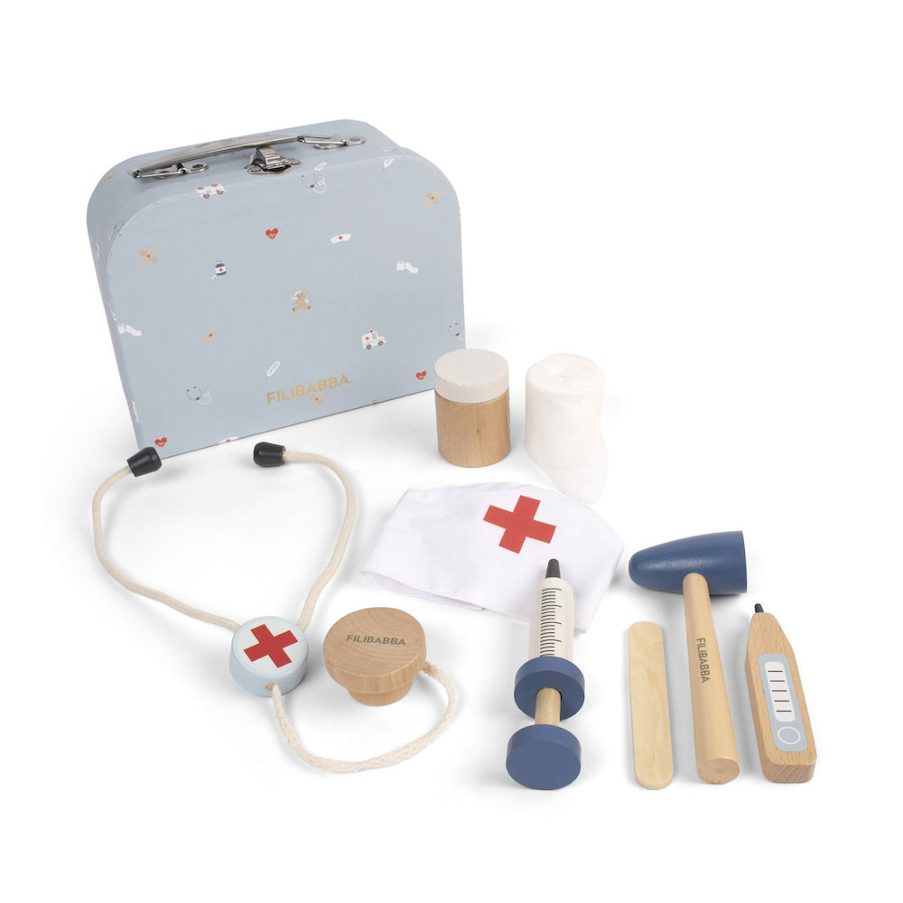 Pozwól swojemu maluchowi wcielić się w rolę troskliwego doktora z uroczym zestawem Małego Lekarza FILIBABBA. Idealny do inspirowania kreatywnej zabawy w odgrywanie ról, ten zestaw zachęca do twórczego myślenia i pomaga dzieciom odkrywać świat medycyny w zabawny i angażujący sposób. Niezależnie od tego, czy to badanie kontrolne ulubionego misia, czy lalka wymagająca opieki, ten zestaw inspiruje do empatii, ciekawości i pewności siebie. Jednocześnie jest idealny do łagodzenia obaw związanych z prawdziwymi wizytami u lekarza.