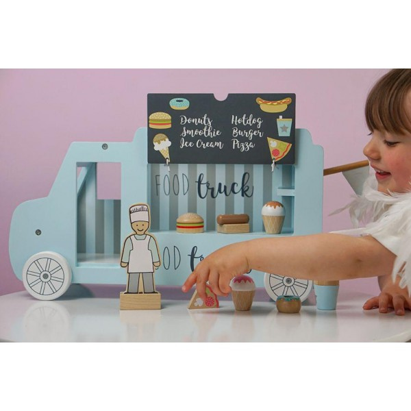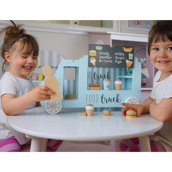 Furgonetka z jedzeniem skandynawskiej marki Jabadabado, to pojazd i restauracja w jednym! Niezwykle pobudza wyobraźnię i rozwija pasje kulinarne. Ten bufet na kółkach, jest pięknie wykonany w stonowanej kolorystyce zawiera wszystko co potrzebne do kreatywnej zabawy. Idealny zarówno dla dziewczynki, jak i dla chłopca. Food truck - to początek niejednej kulinarnej i nie tylko przygody:)