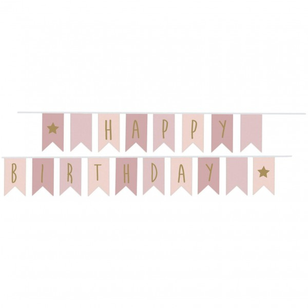 Papierowy łańcuch dekoracyjny Happy Birthday - idealny na przyjęcia urodzinowe dla młodych dam. Ta duża girlanda w odcieniach różu składa się z osiemnastu flag o łącznej długości 3,5metra.