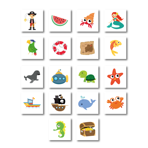 Zestaw zawiera: 36 sztuk klocków = 18 par
