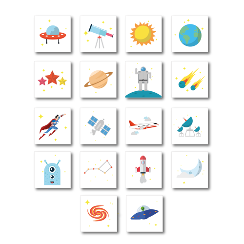 Zestaw zawiera: 36 sztuk klocków = 18 par