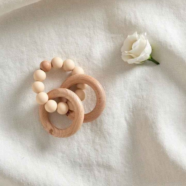 Gryzak beżowy silikonowo-drewniany JackOJuno