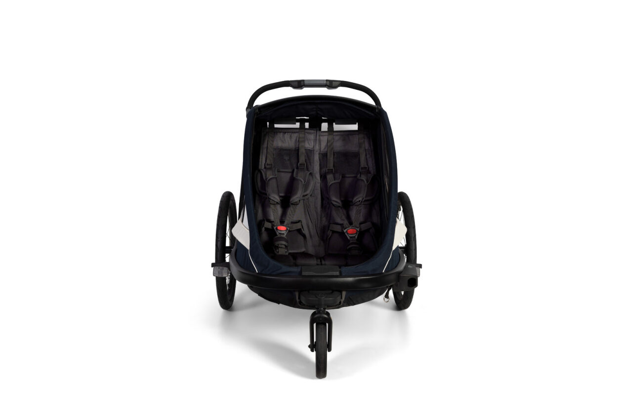 Wkładka dla niemowląt dedykowana jest już od urodzenia (do osiągnięcia 75 cm/10 kg), ma 5-punktowe pasy i miękką wyściółkę dla większego komfortu i bezpieczeństwa najmłodszego pasażera. W podwójnej przyczepce można zamontować 2 wkładki jednocześnie (dla bliźniąt).