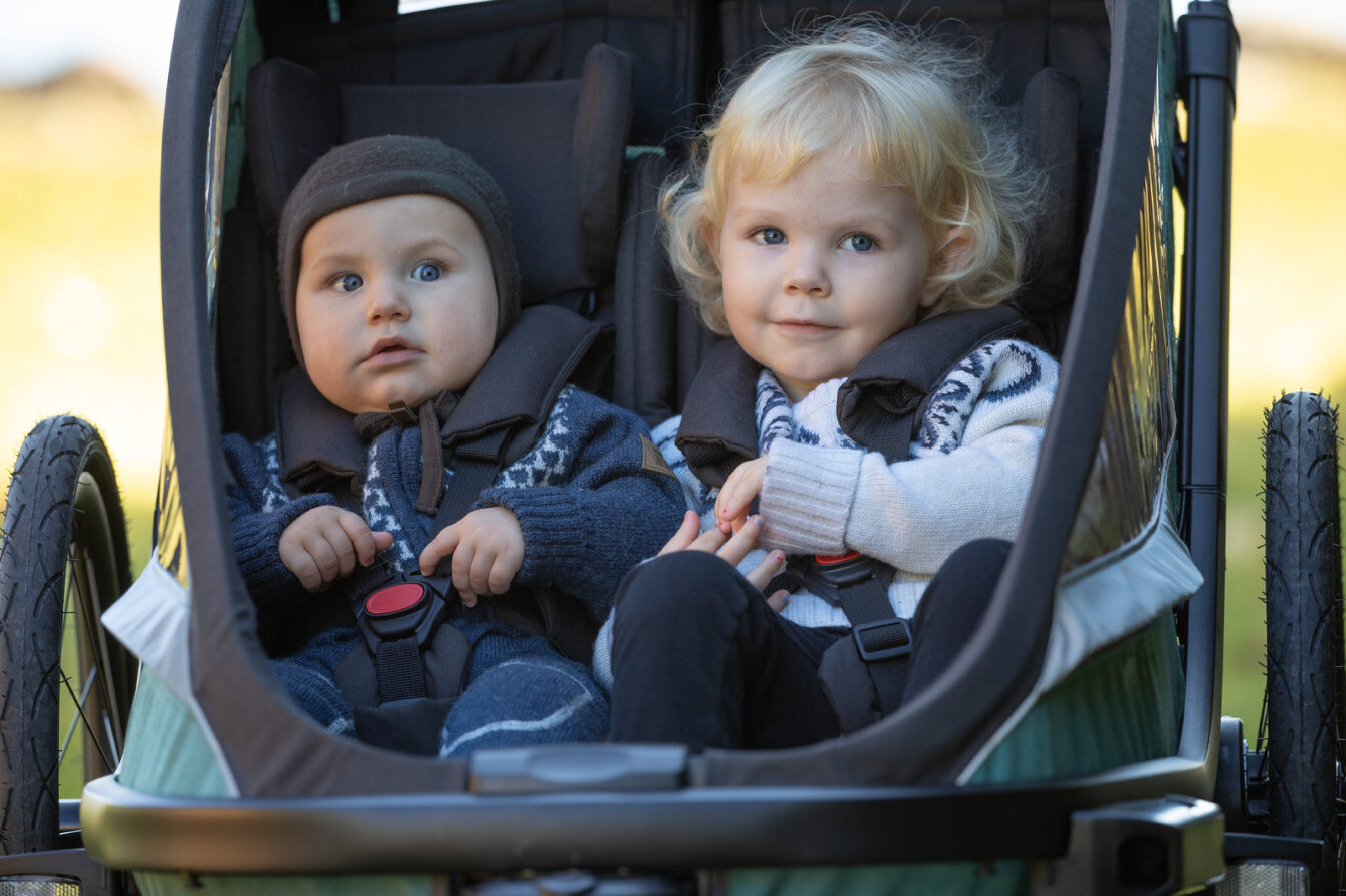 Wkładka dla niemowląt dedykowana jest już od urodzenia (do osiągnięcia 75 cm/10 kg), ma 5-punktowe pasy i miękką wyściółkę dla większego komfortu i bezpieczeństwa najmłodszego pasażera. W podwójnej przyczepce można zamontować 2 wkładki jednocześnie (dla bliźniąt).
