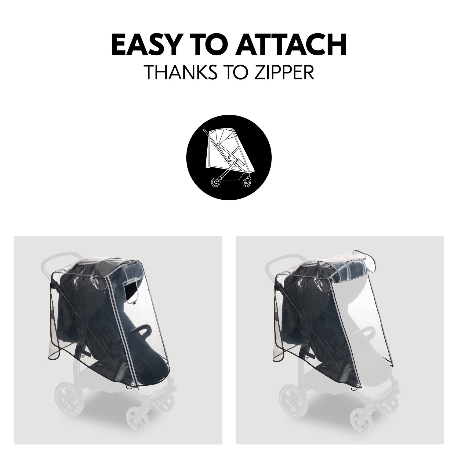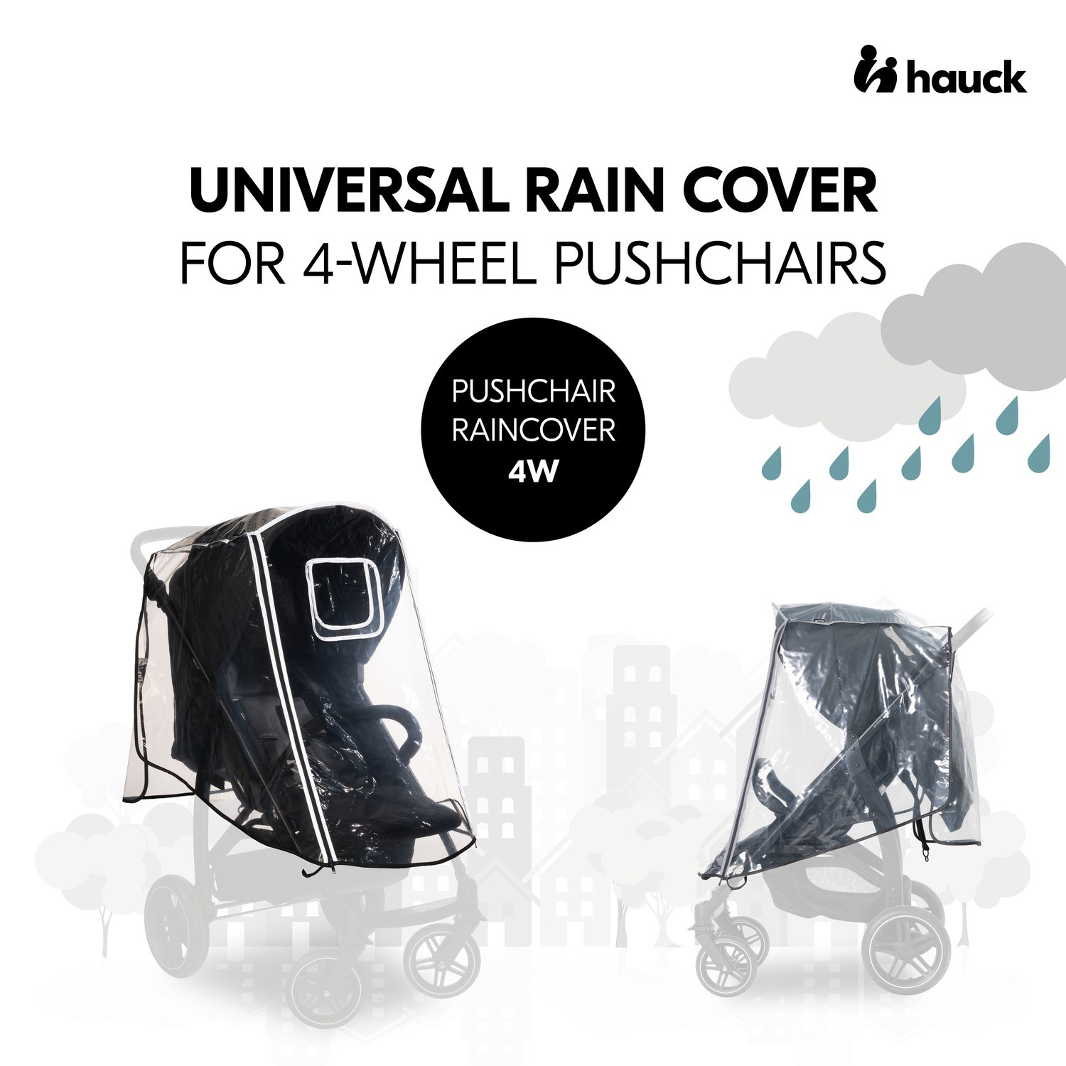 Pushchair Raincover 4W - uniwersalna osłona przeciwdeszczowa do wózków 4-kołowych. Wytrzymała, bezpieczna i niezawodna ochrona przed wiatrem i deszczem do wózków 4-kołowych. Osłona przeciwdeszczowa jest mocowana do boku wózka za pomocą zapięcia na rzep. W ten sposób osłona jest zawsze bezpieczna, a dziecko pozostaje suche. Osłona przeciwdeszczowa jest wykonana z nieszkodliwej, wytrzymałej i trwałej folii PEVA. Łatwe wsiadanie, lepsza widoczność, dobra cyrkulacja powietrza i blisko dziecka. Przód osłony przeciwdeszczowej otwiera się łatwo za pomocą zamka błyskawicznego. Dzięki temu można pozostawić osłonę na wózku, gdy dziecko wsiada lub wysiada. Odblaskowe wykończenia sprawiają, że osłona jest lepiej widoczna o zmierzchu, co zapewnia dodatkowe bezpieczeństwo podczas nocnych spacerów. Dla lepszej wentylacji można w każdej chwili otworzyć okienko. Niewielkie rozmiary, łatwe przechowywanie i uniwersalne zastosowanie do wózków czterokołowych. Niewielkie rozmiary pozwalają na przechowywanie osłony przeciwdeszczowej w sposób oszczędzający miejsce. Mieści się w koszyku na zakupy, torbie lub organizerze wózka. Dzięki temu jest zawsze pod ręką. Osłona przeciwdeszczowa pasuje do większości wózków czterokołowych, np. hauck Rapid 4D, Move so Simply, Walk N Care lub Travel N Care.