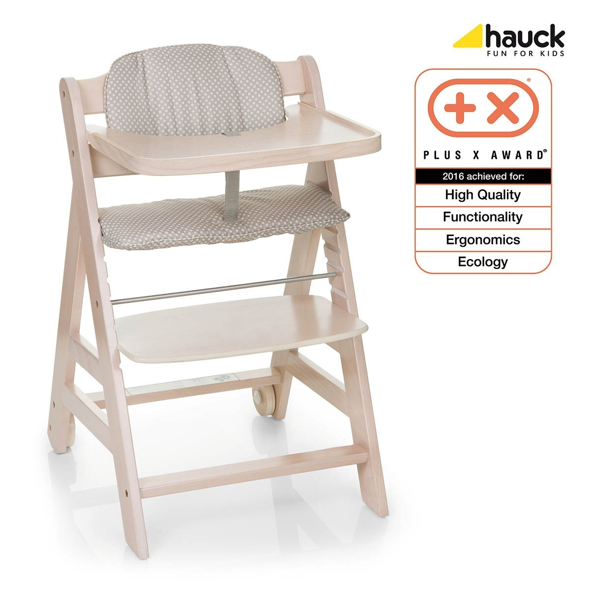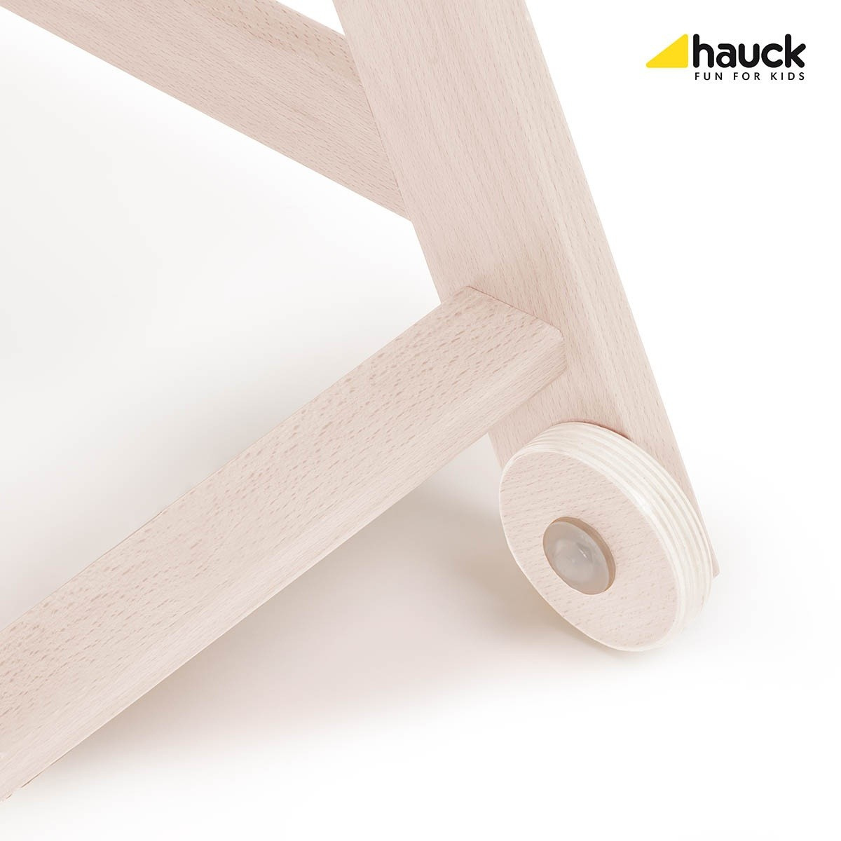 Hauck wnosi swój wkład w ochronę środowiska dzięki drewnianemu krzesełku Beta+. Przetworzone drewno z ekologicznych europejskich upraw drzew bukowych.