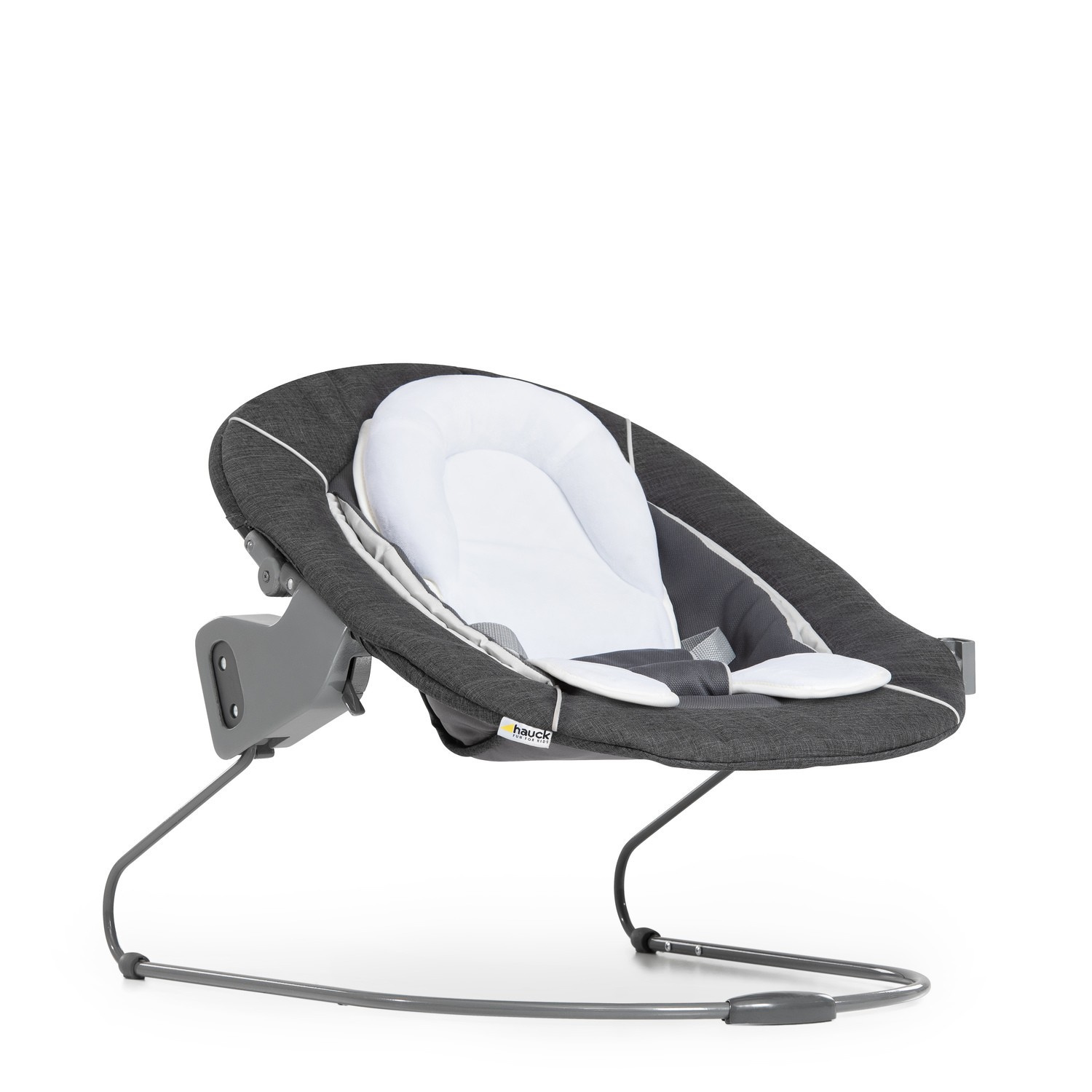 Alpha Bouncer Deluxe - idealny zestaw dla noworodka. Ten przytulny leżaczek jest kompatybilny z drewnianymi krzesełkami do karmienia hauck Alpha+ i Beta+, których można używać już od pierwszych dni życia. Noworodek poczuje się komfortowo, gdyż może znajdować się na wysokości wzroku z rodziną. Oparcie bujaka można regulować jedną ręką, a mobilna rama leżaczka to miła odmiana.
