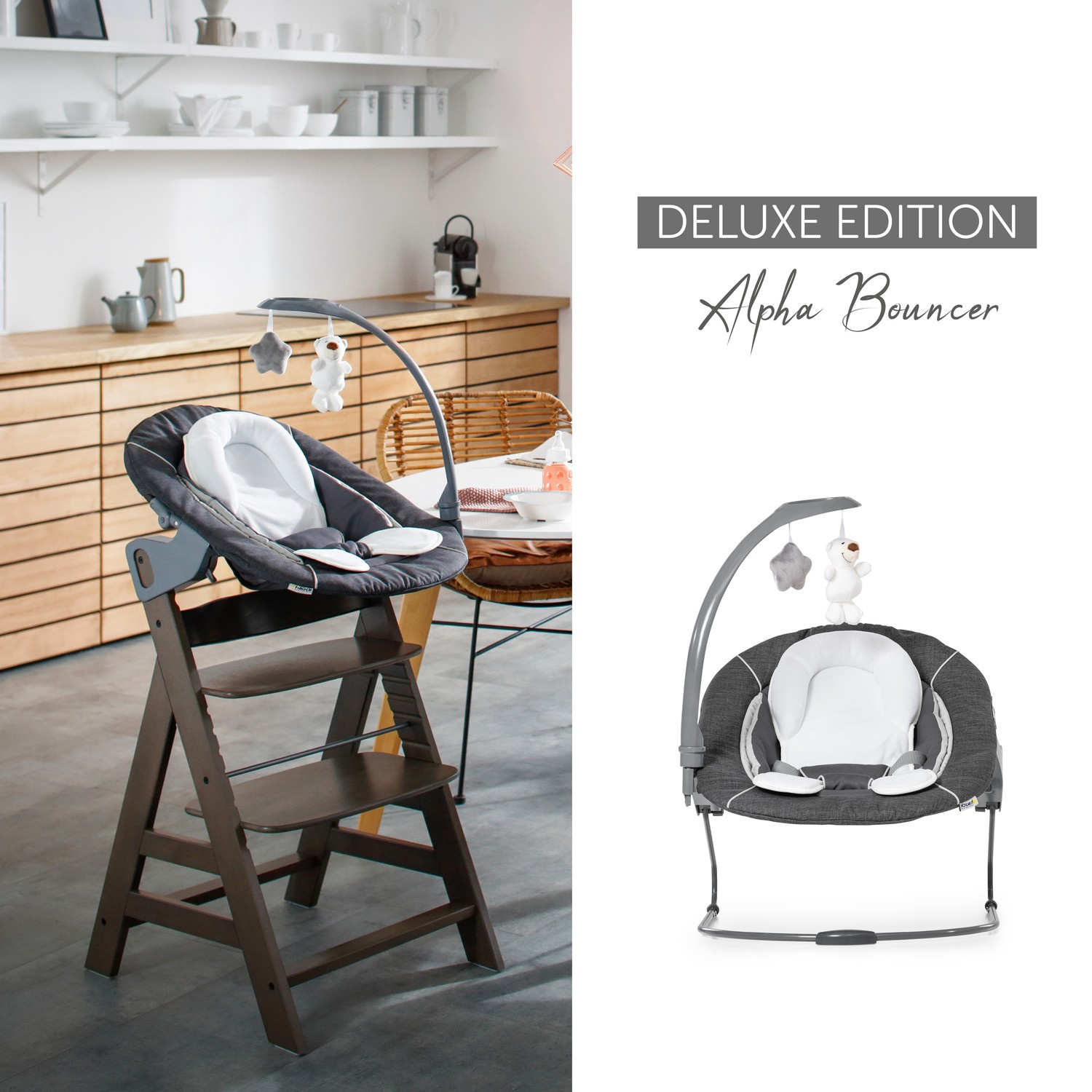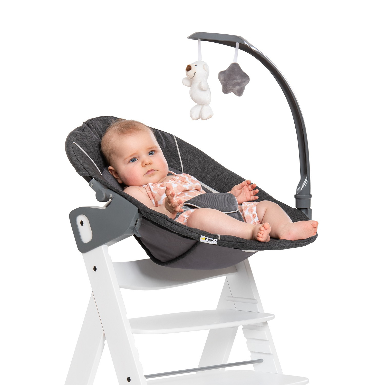 Nasza rekomendacja: kup Alpha Bouncer Deluxe i wysokie krzesełko do karmienia hauck Alpha razem i bądź doskonale wyposażony od pierwszych dni życia dziecka. Po prostu perfekcja. Zarówno krzesła Alpha+, jak i Beta+ są przeznaczone do 90 kg i są towarzyszem na lata.