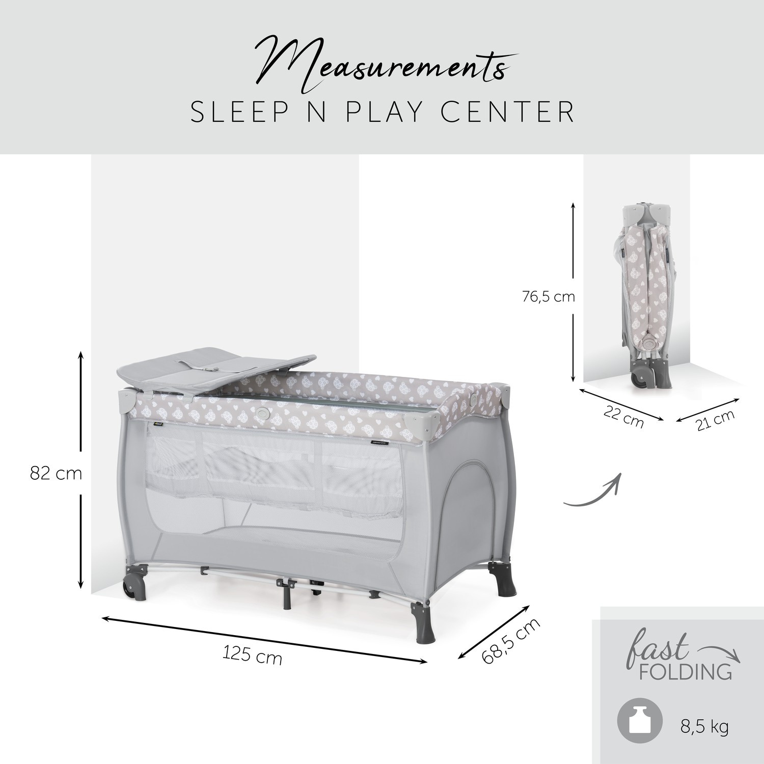 To wspaniałe urządzenie jest doskonałą opcją wakacyjną lub na wyjazd do Babci lub Dziadka. W warunkach domowych, można wykorzystać gondolę wózka jako dodatkowe łóżko do spania. Dzięki zestawowi Sleep'n Play Center jesteście doskonale przygotowani, gdyż wszystko, co jest Wam niezbędne jest razem z Wami podczas Waszych wypraw. Praktyczna mata do zmiany pieluch (mocowana także do łóżeczka) umożliwia sprawne przewinięcie dziecka. Dzięki pasowi do przypinania malucha oraz podnoszonemu brzegowi, Wasz Dzidziuś będzie leżeć wygodnie i bezpiecznie. Po wykorzystaniu, matę do przewijania można po prostu powiesić na łóżeczku. Na drugim poziomie podniesionej części do leżenia noworodka można ułożyć do snu. Na pewno nic mu się nie stanie, jednocześnie można chronić swój kręgosłup podczas układania malucha lub wyciągania z łóżeczka. Wasz Dzidziuś może także bawić się w swoim Sleep'n Play Center. Jest on tutaj bezpieczny i łatwo go obserwować dzięki okienku umożliwiającemu podgląd. Jeżeli zechcecie umieścić gondolę w innym pomieszczeniu, można zestaw przemieścić bez trudu dzięki dwóm rolkom. Zestaw Sleep'n Play Centre można rozstawić lub złożyć w kilku ruchach i przechowywać nawet w niewielkiej przestrzeni. Podczas wyjazdów, łóżeczko można ciągnąć za sobą, jak walizkę. Wygodny dodatkowy materac Sleeper oraz dopasowane prześcieradło Bed Me w rozmiarze 120 x 60 cm stanowią dodatkowe wyposażenie.Gwarancja producenta na 2 lata
