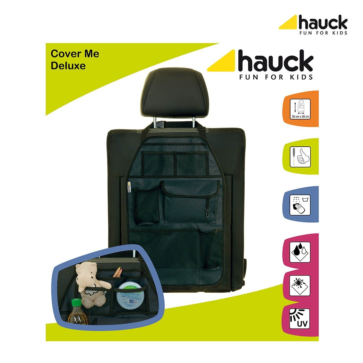 Ta zmywalna, nadająca się do prania ochrona oparcia wykonany jest z wysokiej jakości, trwałym i wodoodpornym materiałem. Jest łatwa do zaczepienia i oferuje dużo miejsca. Cover Me Deluxe posiada dużo miejsca. Rzeczy przechowywane w torbie są zawsze pod ręką. Złożony znajdzie również miejsce w samochodzie.