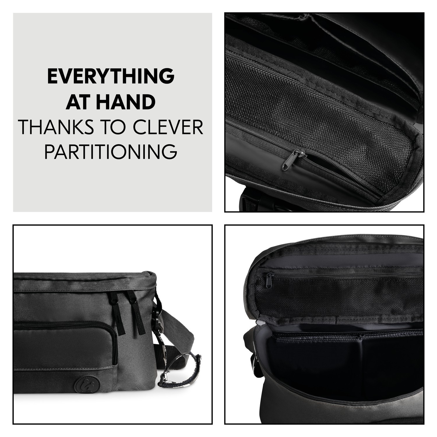 Pushchair Hip Bag - organizer do wózka i torba biodrowa 2 w 1. Elastyczne zastosowanie jako torba do wózka lub torba biodrowa. Ta torba to prawdziwy niezbędnik, gdy często wychodzisz z wózkiem dziecięcym. Torba, którą można przymocować do wózka lub nosić na ciele, pozwala mieć wszystkie ważne rzeczy pod ręką. Można w niej przechowywać rzeczy dziecka, które trzeba mieć pod ręką, takie jak butelki czy smoczek. Telefon komórkowy można umieścić w przedniej przegródce, a klucze w wewnętrznej kieszeni. Łatwy do przymocowania do wózka i wygodny w noszeniu. Dzięki regulowanym zapięciom na rzep organizer można błyskawicznie przymocować do wózka dziecięcego. W razie potrzeby można zdjąć paski mocujące. Wszystkie przegródki są zapinane na zamek błyskawiczny, dzięki czemu rzeczy zawsze pozostają na swoim miejscu i nie można ich zgubić. Szeroki, regulowany pasek pozwala dostosować torbę do własnych potrzeb, dzięki czemu jest zawsze wygodna w noszeniu. Wytrzymały i łatwy w pielęgnacji materiał. Torbę można łatwo wyczyścić zarówno wewnątrz, jak i na zewnątrz, a także prać w pralce w temperaturze 40°C. Dzięki temu torba będzie wyglądać dobrze i stylowo przez lata.