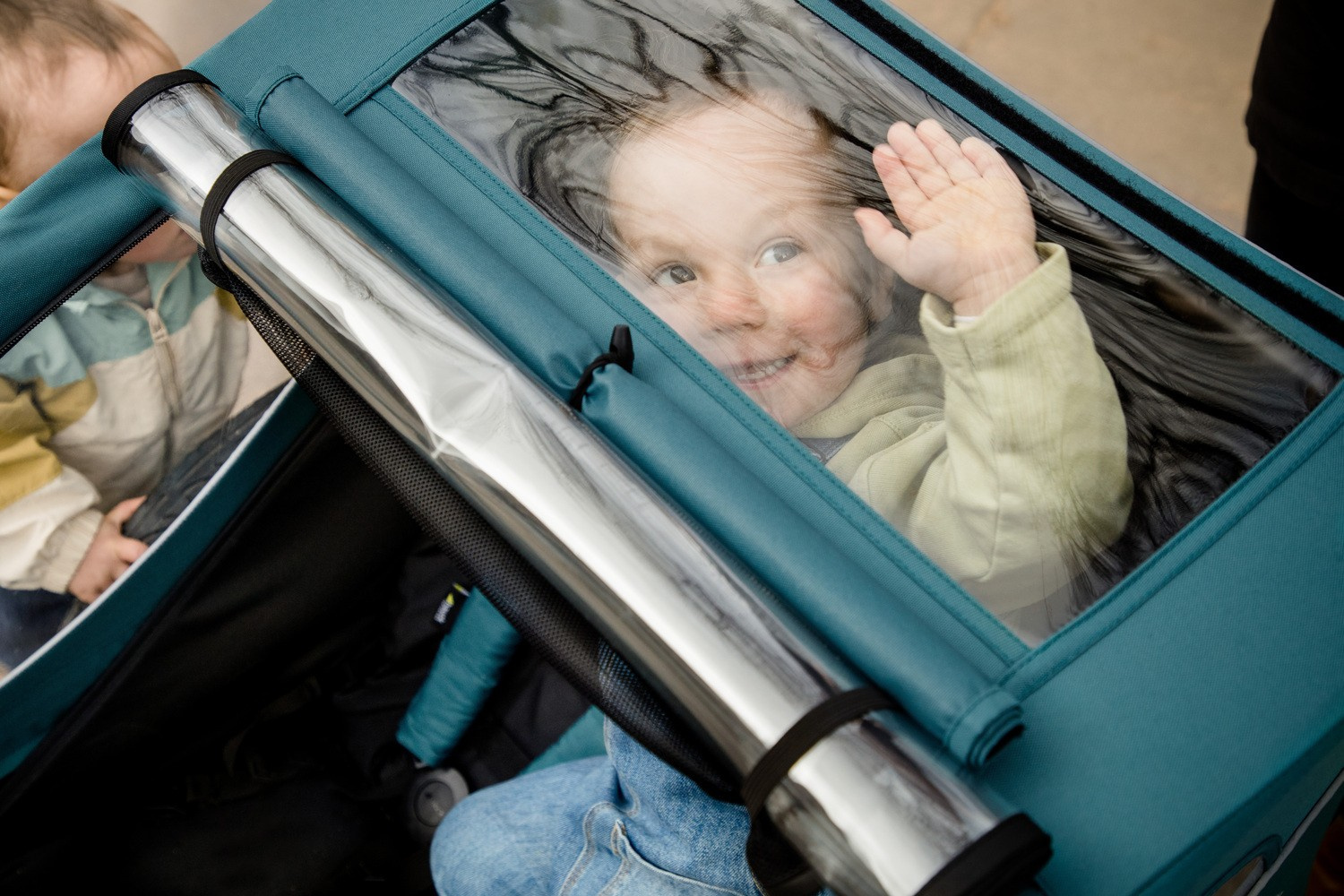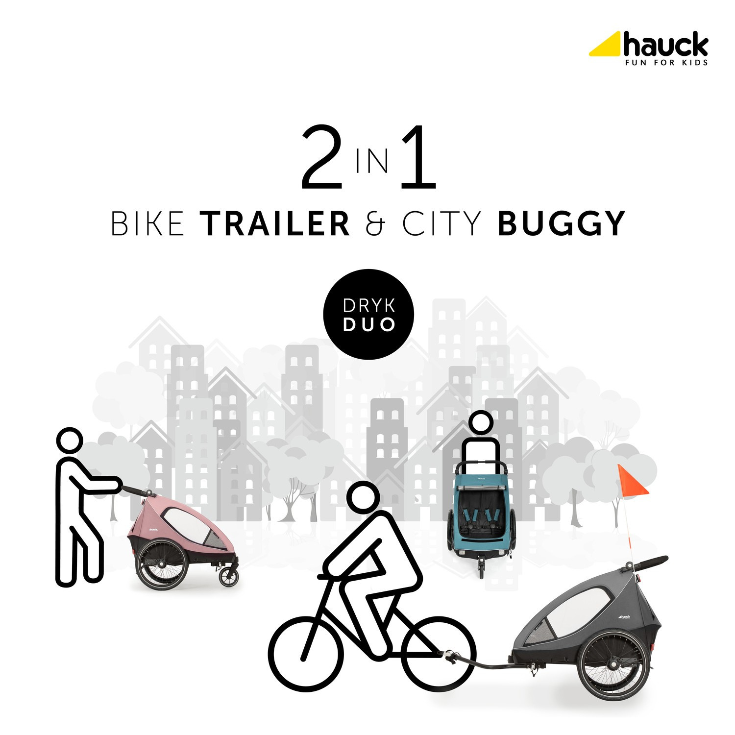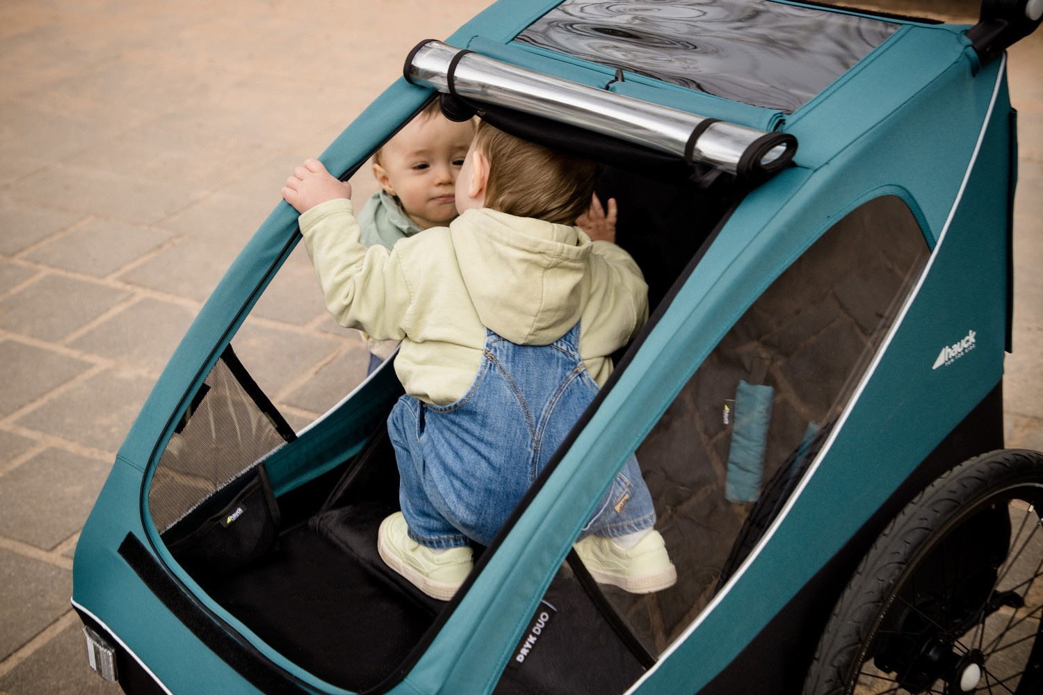 DRYK DUO przekonuje jako przyczepka rowerowa i sportowa spacerówka na użytek w mieście. Jej smukła sylwetka umożliwia przemieszczanie się nawet przez wąskie przejścia. Twoim dzieciom zapewnia ona bezpieczną i wygodną jazdę, Tobie - szczególny komfort obsługi, dzięki mechanizmowi jednoręcznego składania.