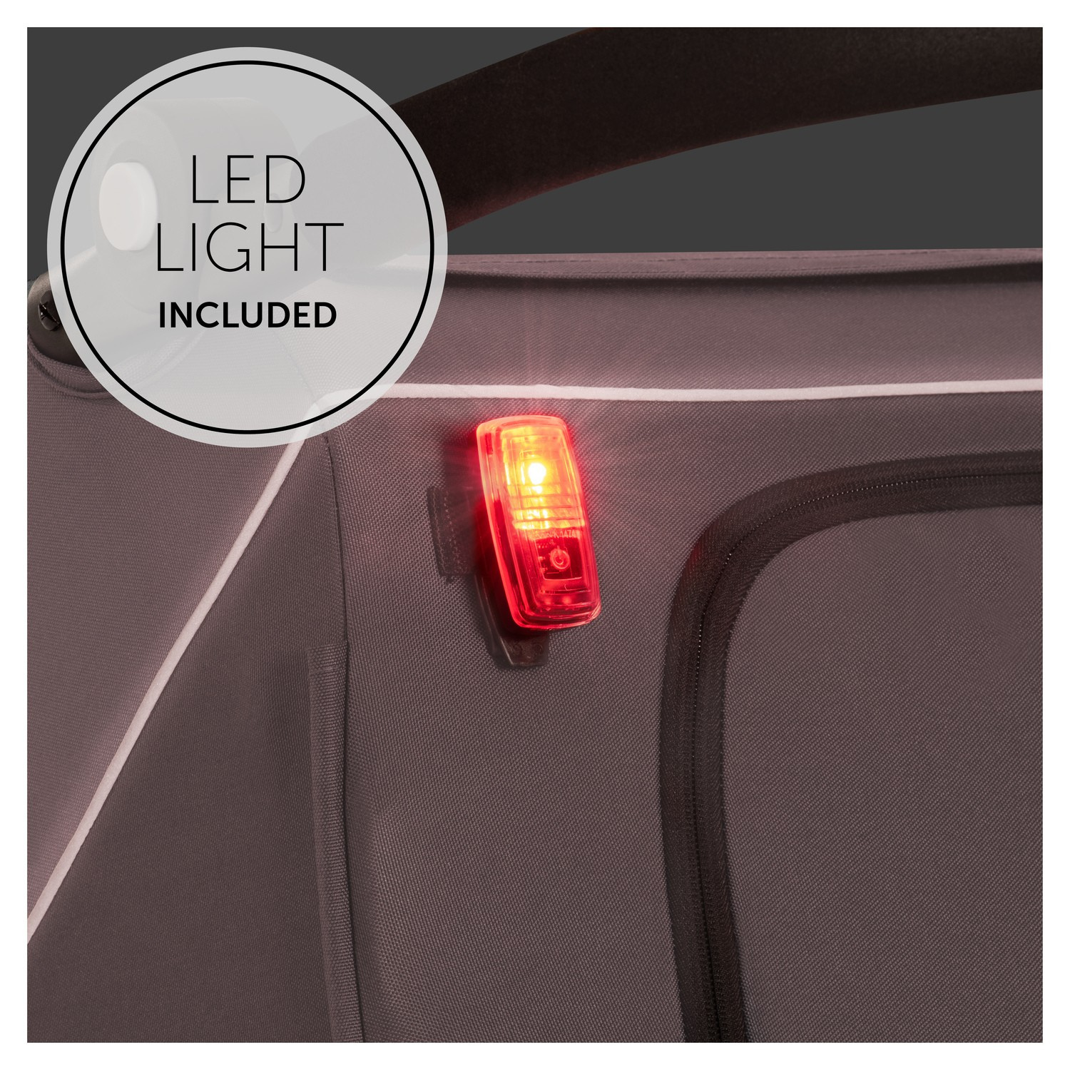 Bezpieczeństwo transportu małych pasażerów stoi dla nas na pierwszym miejscu. DRYK DUO wyposażony jest w cztery światła odblaskowe, tylne światło ledowe, odblaskowe linie na kołach i pokrowcu oraz chorągiewkę ostrzegawczą. Komplet zabezpieczeń uzupełniają 5-punktowe zapięcie oraz hamulec postojowy.Gwarancja producenta na 2 lata