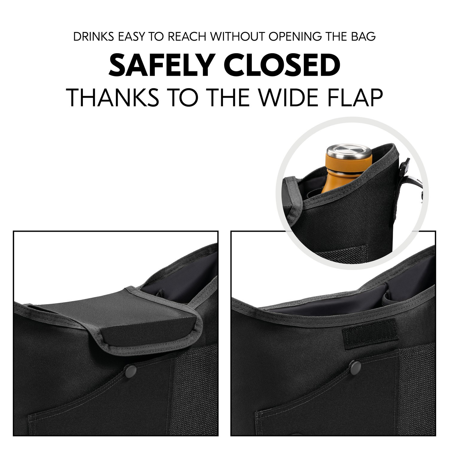 Torba do wózka dziecięcego - praktyczny organizer. Dzięki niej dziecięce rzeczy podczas spaceru czy zakupów będziesz mieć zawsze pod ręką. Urocze detale zapewniają modny wygląd. Organizer ma dwa uchwyty na butelki, które można docisnąć, aby uzyskać dodatkową przestrzeń, zapinaną na zamek kieszeń na klucze, praktyczne kieszenie z siatki i zewnętrzną kieszeń z zatrzaskiem. Wyjątkowo szeroka i stabilna klapa zapewnia bezpieczne zamknięcie torby. Jednocześnie zawsze masz dostęp do napojów bez konieczności otwierania torby. Łatwe mocowanie do wózka dziecięcego. Dzięki regulowanym zapięciom na rzepy można szybko i łatwo przymocować torbę do wózka i zawsze mieć wolne ręce do noszenia lub trzymania dziecka. Wytrzymały i łatwy w pielęgnacji materiał. Torbę do wózka dziecięcego można łatwo wytrzeć zarówno wewnątrz, jak i na zewnątrz i można ją prać w pralce w temperaturze 40 ° C. Dzięki temu torba będzie wyglądać dobrze i stylowo przez lata.