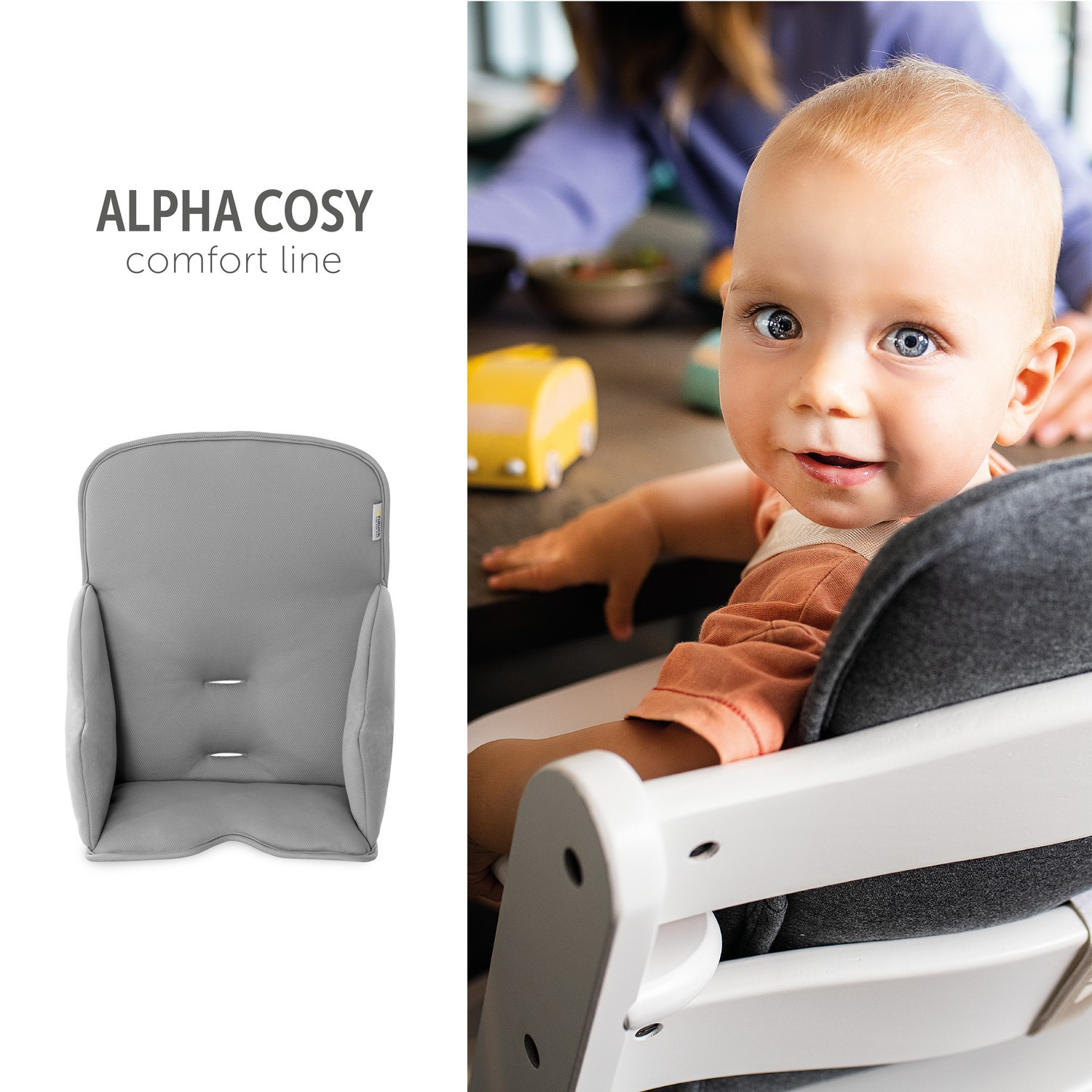 Nasz Alpha Cosy Comfort to wyjątkowo wygodny reduktor siedziska wykonany z wysokiej jakości elastycznej tkaniny. Reduktor jest nie tylko miękko wyściełany, ale także zapewnia Twojemu maleństwu bezpieczną pozycję siedzącą dzięki bardzo wysokiemu oparciu i wzmocnionym bocznym poduszkom. Alpha Cosy Comfort uzupełnia nasze drewniane krzesełka ALPHA+, a także podobne modele i jest gotowy do użycia w ciągu kilku sekund. Dzięki powłoce antypoślizgowej, idealnemu dopasowaniu i łatwemu do dostosowania systemowi pasów, ten reduktor siedziska zawsze pozostanie na miejscu. Nasza rekomendacja: reduktor siedziska Alpha Cosy Comfort może być również używany w połączeniu z dostępną oddzielnie tacą Alpha Wooden Tray lub Alpha Tray.Gwarancja producenta na 2 lata