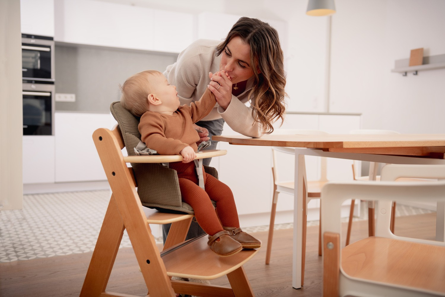 Alpha Cosy Select służy szczególnie w pierwszych miesiącach, w których twoje dziecko siedzi w drewnianym krzesełku, jako miękko wyściełane, komfortowe pomniejszenie siedziska. Wyjątkowo wysokie oparcie oraz wymoszczone boki chronią główkę, zapewniając dodatkową stabilność.
