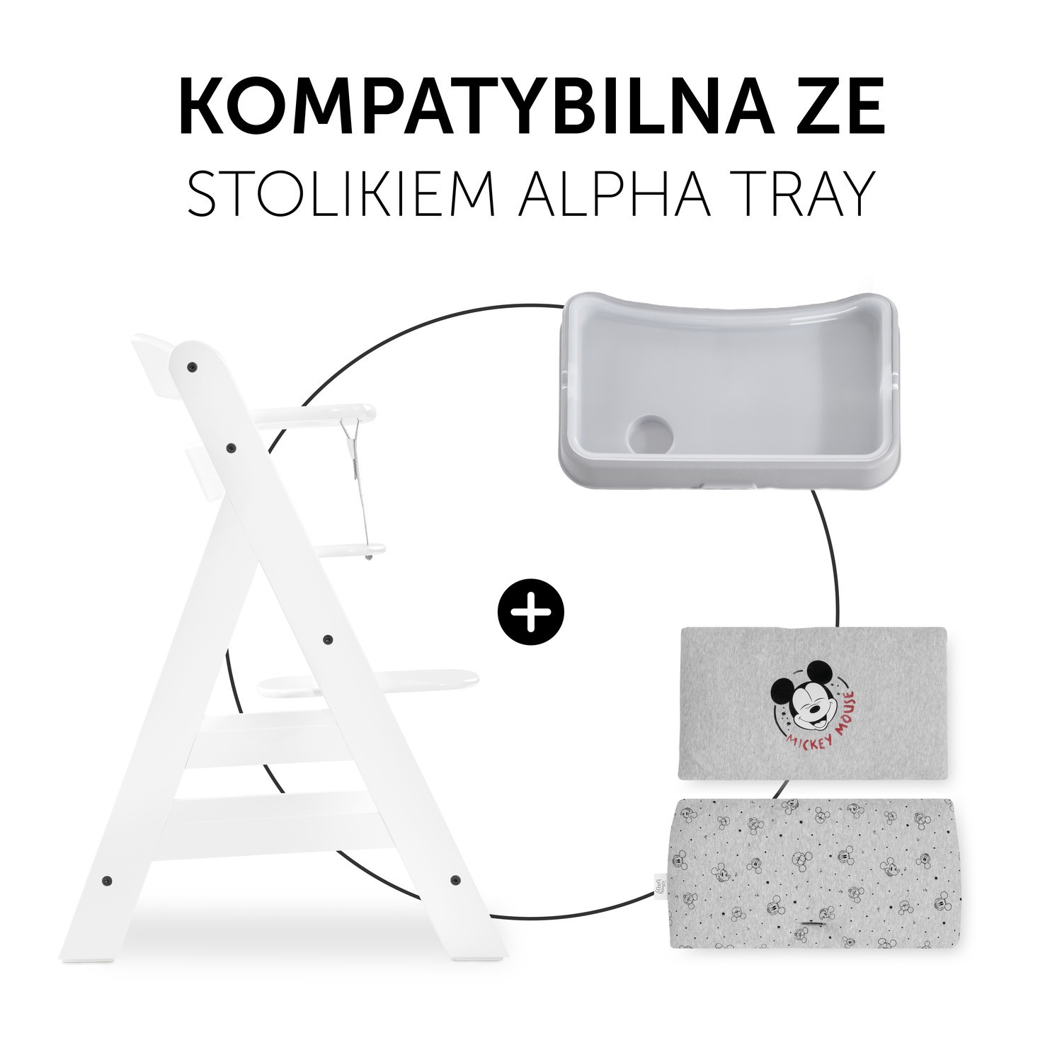 Ta dwuczęściowa poduszka "Highchair Pad Deluxe" może być wykorzystywana jako miękka poduszka lub jako podkładka na krzesełko stanowiąc doskonałe uzupełnienie drewnianych krzesełek Alpha+ oraz Beta+ lub innych krzesełek z podobnej konstrukcji.