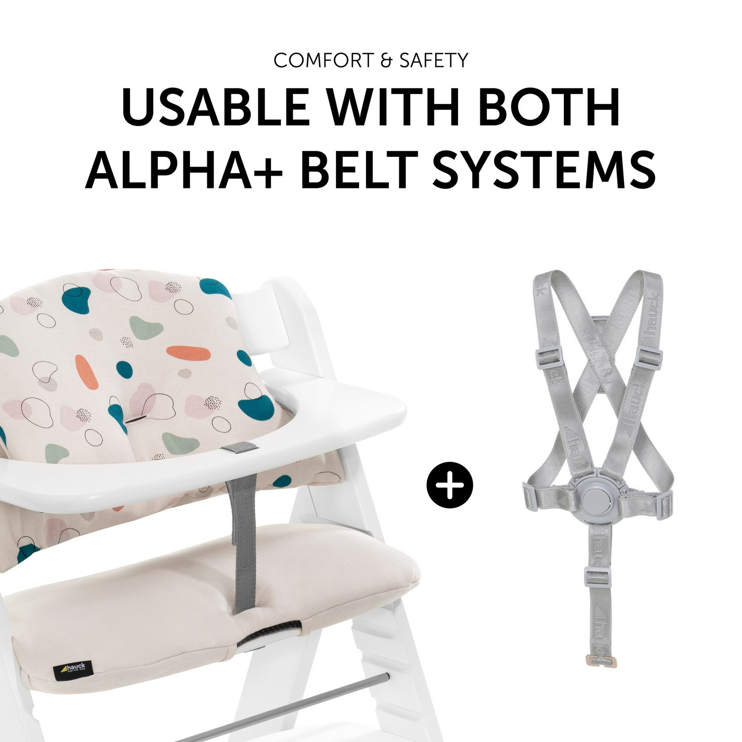 KOMFORTOWY POMNIEJSZACZ SIEDZISKA Z OBUSTRONNIE WYMOSZCZONĄ PODUSZKĄ POD PLECY Dwuczęściowa nakładka służy jako pomniejszacz siedziska przede wszystkim w pierwszych miesiącach, w których twoje dziecko siedzi w drewnianym krzesełku Alpha+. Obustronnie wymoszczona poduszka pod plecy, wraz z miękką poduszką na siedzisko zapewniają dziecku stabilność i wysoki komfort siedzenia. Poduszka wykonana z miękkiej bawełny jest szczególnie przyjazna dla skóry twojego maleństwa. Dwuwarstwowo utkana tkanina zapewnia wymianę powietrza i reguluje wilgotność. Zapobiegając kumulacji powietrza jest przyjemna dla twojego dziecka również w ciepłe dni. Wysokiej jakości nakładka posiada od spodu powłokę antypoślizgową. W ten sposób poduszka nie przesuwa się, nawet podczas zabawy z twoim dzieckiem. Highchair Pad Select nadaje się do każdego drewnianego krzesełka hauck, wraz z obydwomu systemami zapięć. Nakładka pasuje idealnie do drewnianych krzesełek hauck, bo została ona specjalnie dla nich zaprojektowana. Mocuje się ją łatwo i szybko za pomocą zapięć na rzepy. Highchair Pad Select jest kompatybilny ze stolikiem Alpha Tray - w ten sposób dostępny osobno stolik, jak i miękko wymoszczona nakładka mogą być jednocześnie zamocowane do drewnianego krzesełka.