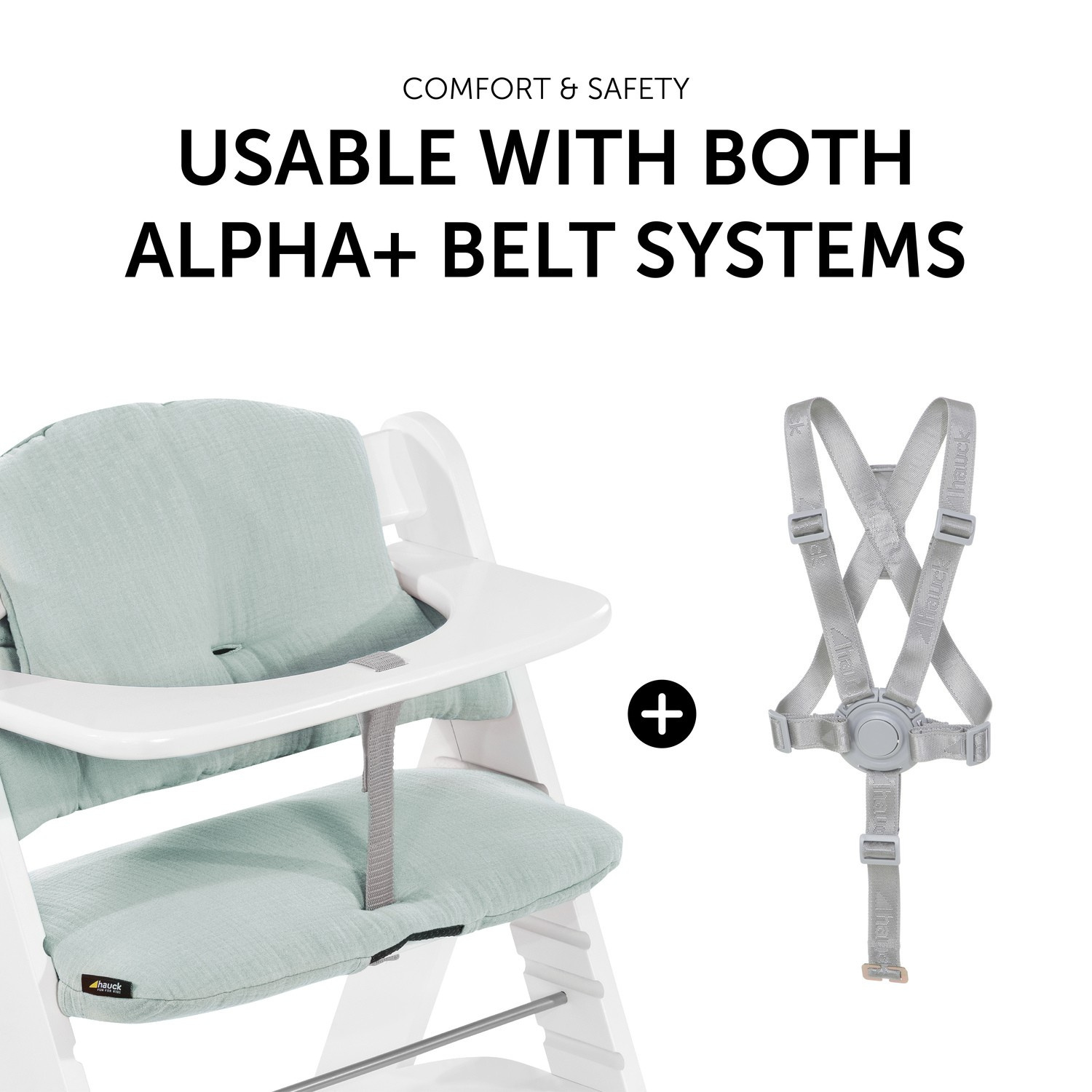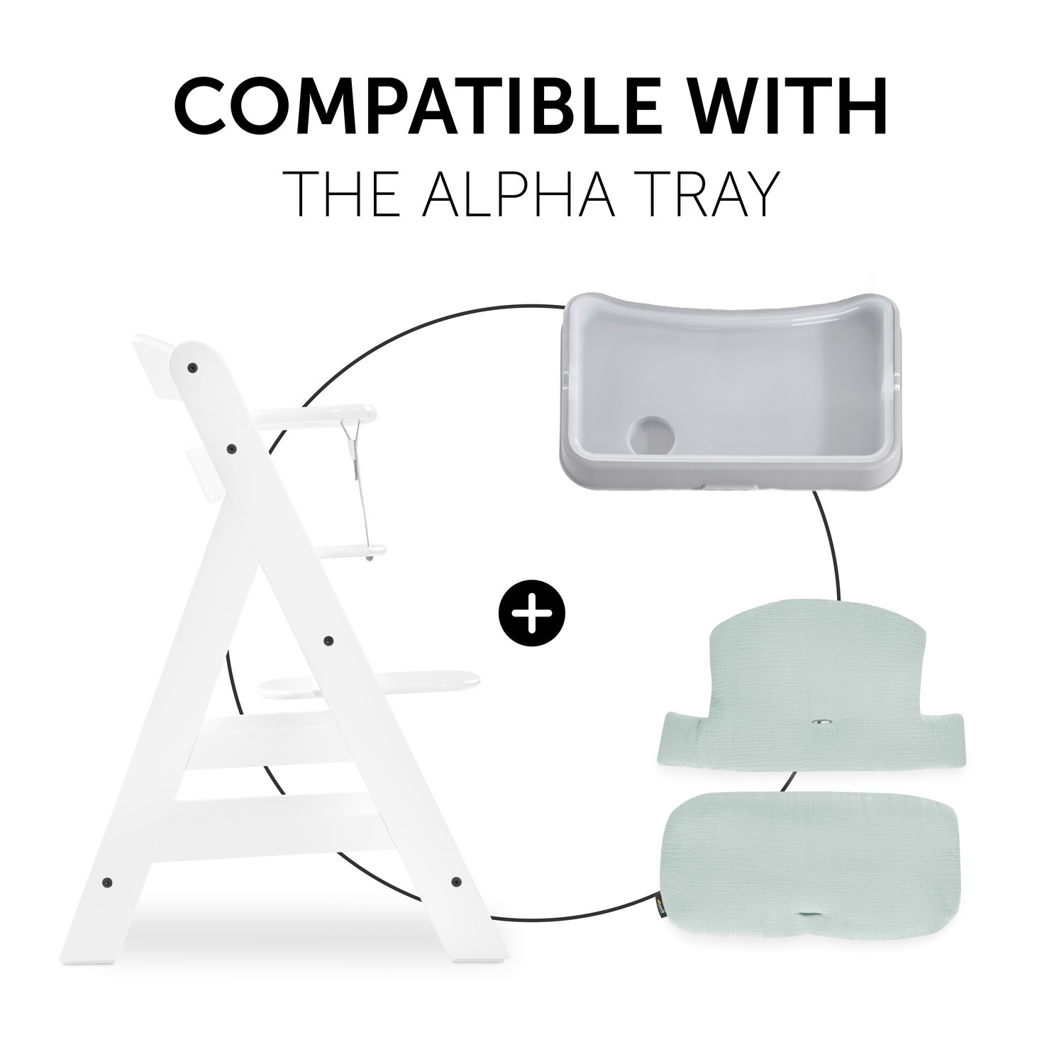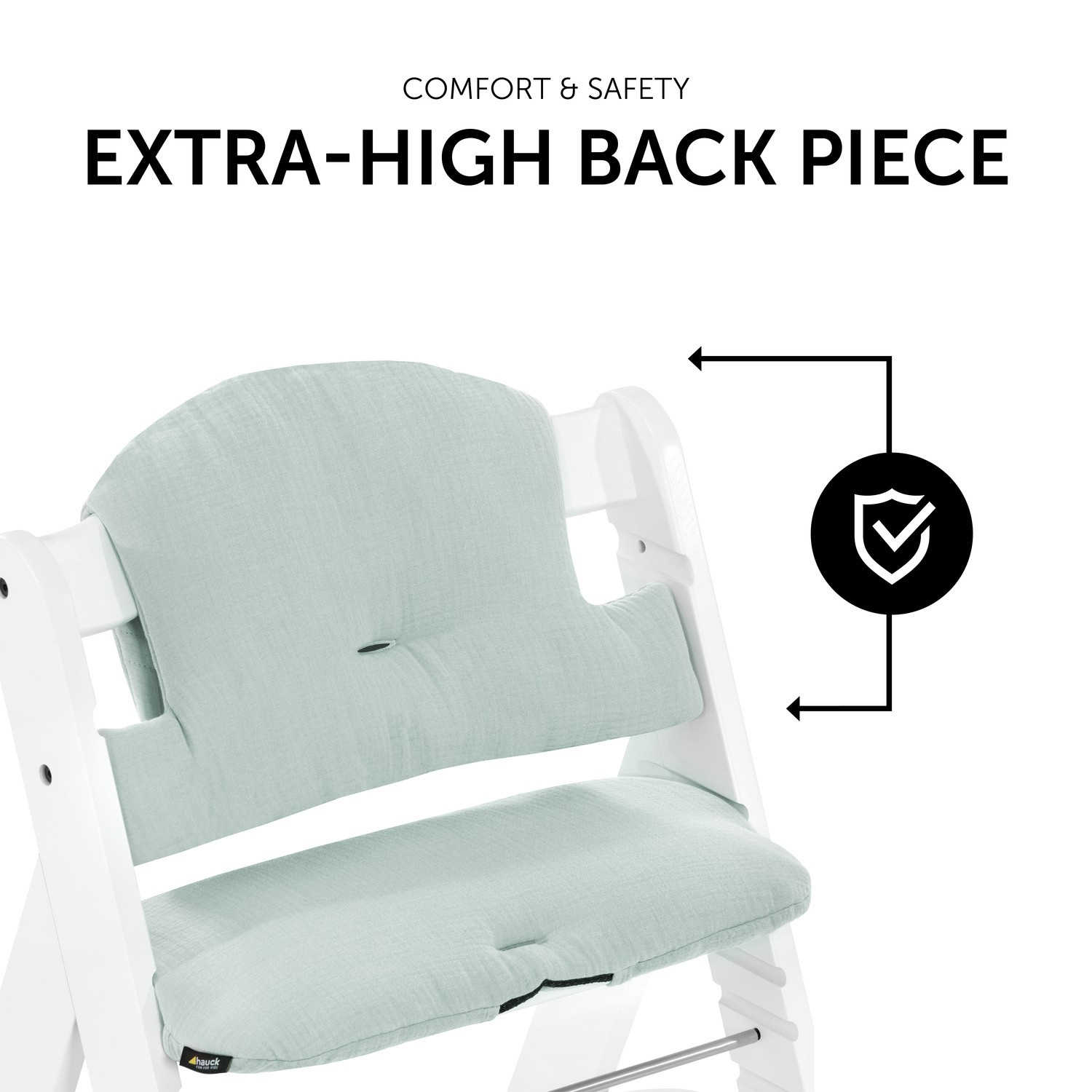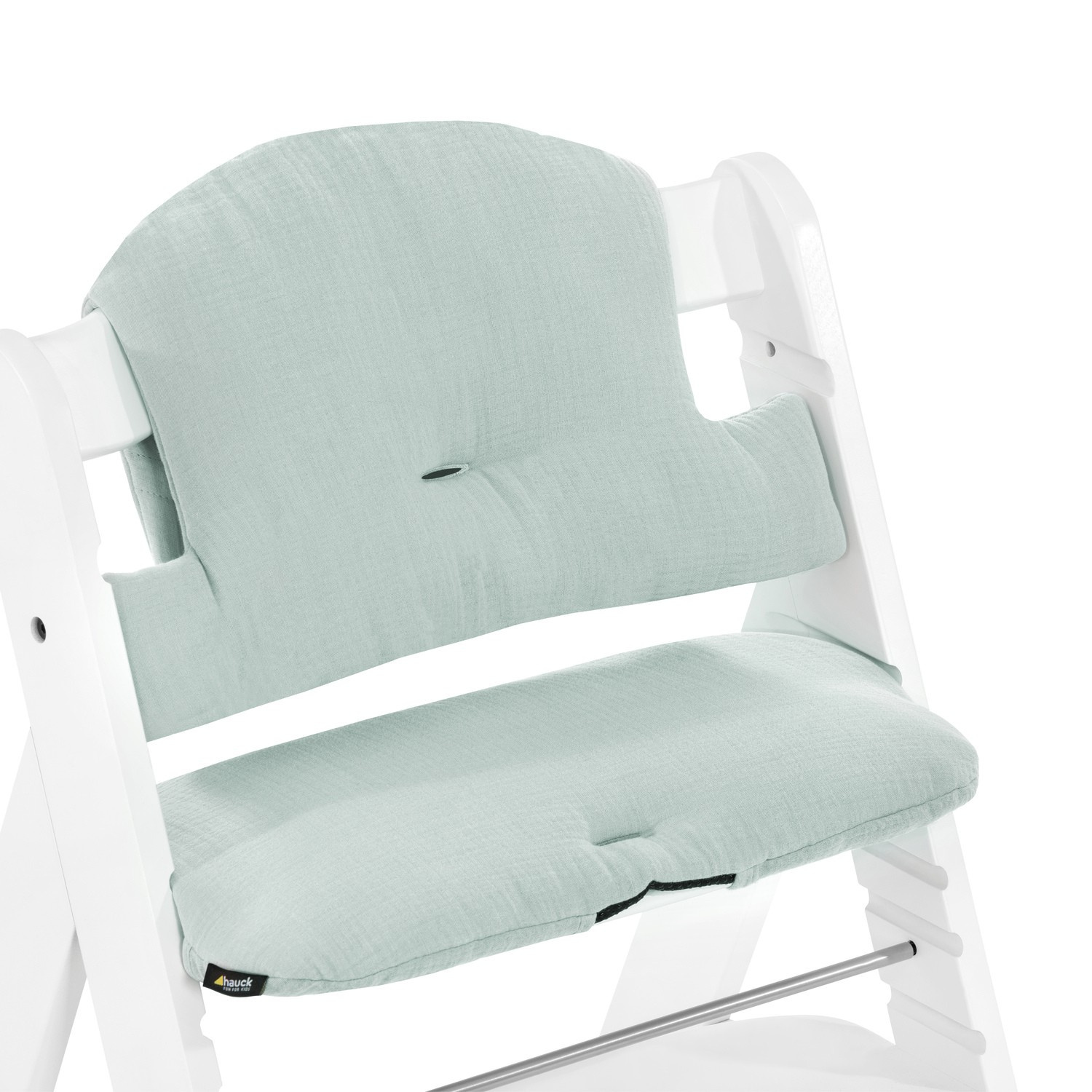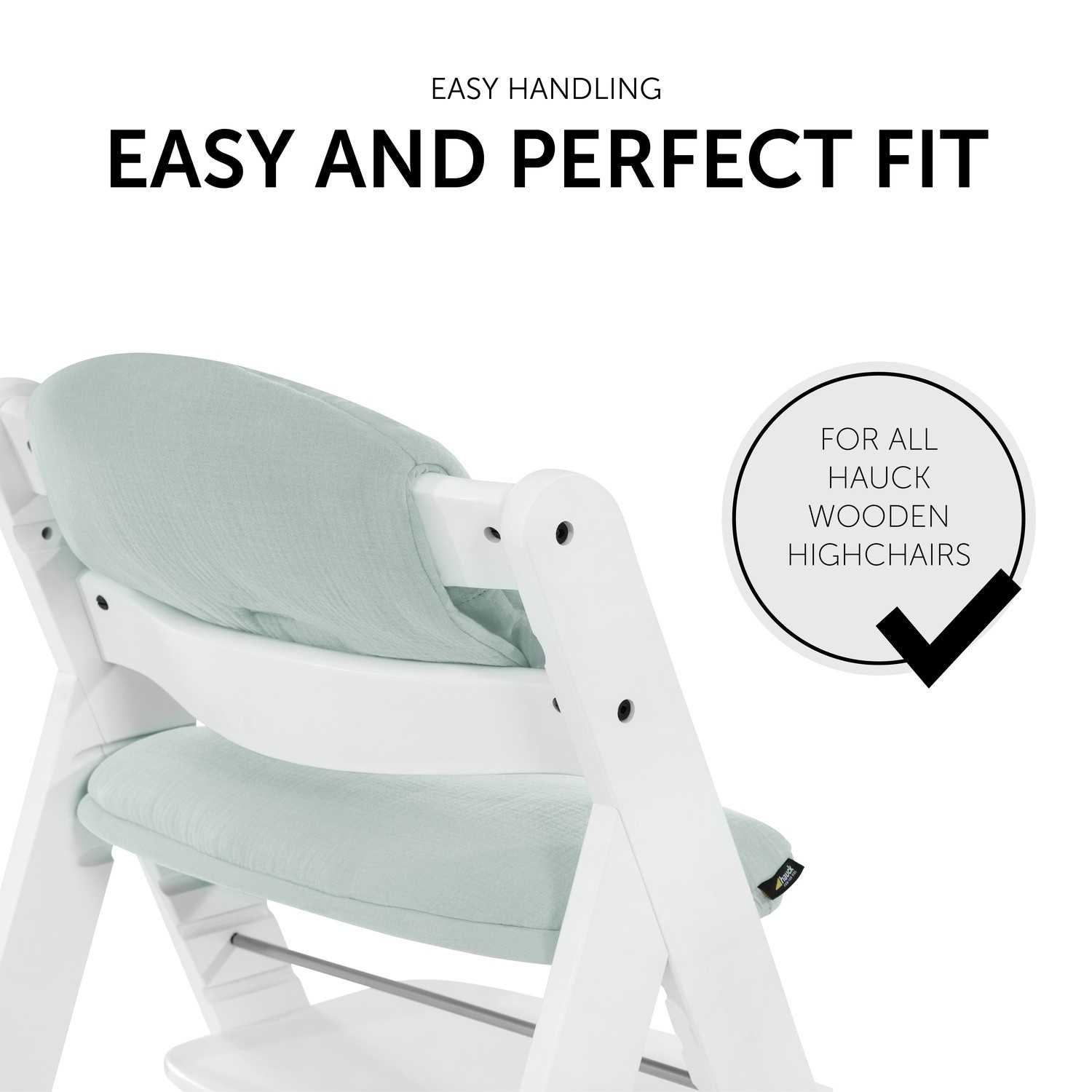 KOMFORTOWY POMNIEJSZACZ SIEDZISKA Z OBUSTRONNIE WYMOSZCZONĄ PODUSZKĄ POD PLECY Dwuczęściowa nakładka służy jako pomniejszacz siedziska przede wszystkim w pierwszych miesiącach, w których twoje dziecko siedzi w drewnianym krzesełku Alpha+. Obustronnie wymoszczona poduszka pod plecy, wraz z miękką poduszką na siedzisko zapewniają dziecku stabilność i wysoki komfort siedzenia. Poduszka wykonana z miękkiego muślinu jest szczególnie przyjazna dla skóry twojego maleństwa. Dwuwarstwowo utkana tkanina bawełniana zapewnia wymianę powietrza i reguluje wilgotność. Zapobiegając kumulacji powietrza jest przyjemna dla twojego dziecka również w ciepłe dni. Wysokiej jakości nakładka posiada od spodu powłokę antypoślizgową. W ten sposób poduszka nie przesuwa się, nawet podczas zabawy z twoim dzieckiem. Highchair Pad Select nadaje się do każdego drewnianego krzesełka hauck, wraz z obydwomu systemami zapięć. Nakładka pasuje idealnie do drewnianych krzesełek hauck, bo została ona specjalnie dla nich zaprojektowana. Mocuje się ją łatwo i szybko za pomocą zatrzasków. Highchair Pad Select jest kompatybilny ze stolikiem Alpha Tray - w ten sposób dostępny osobno stolik, jak i miękko wymoszczona nakładka mogą być jednocześnie zamocowane do drewnianego krzesełka.