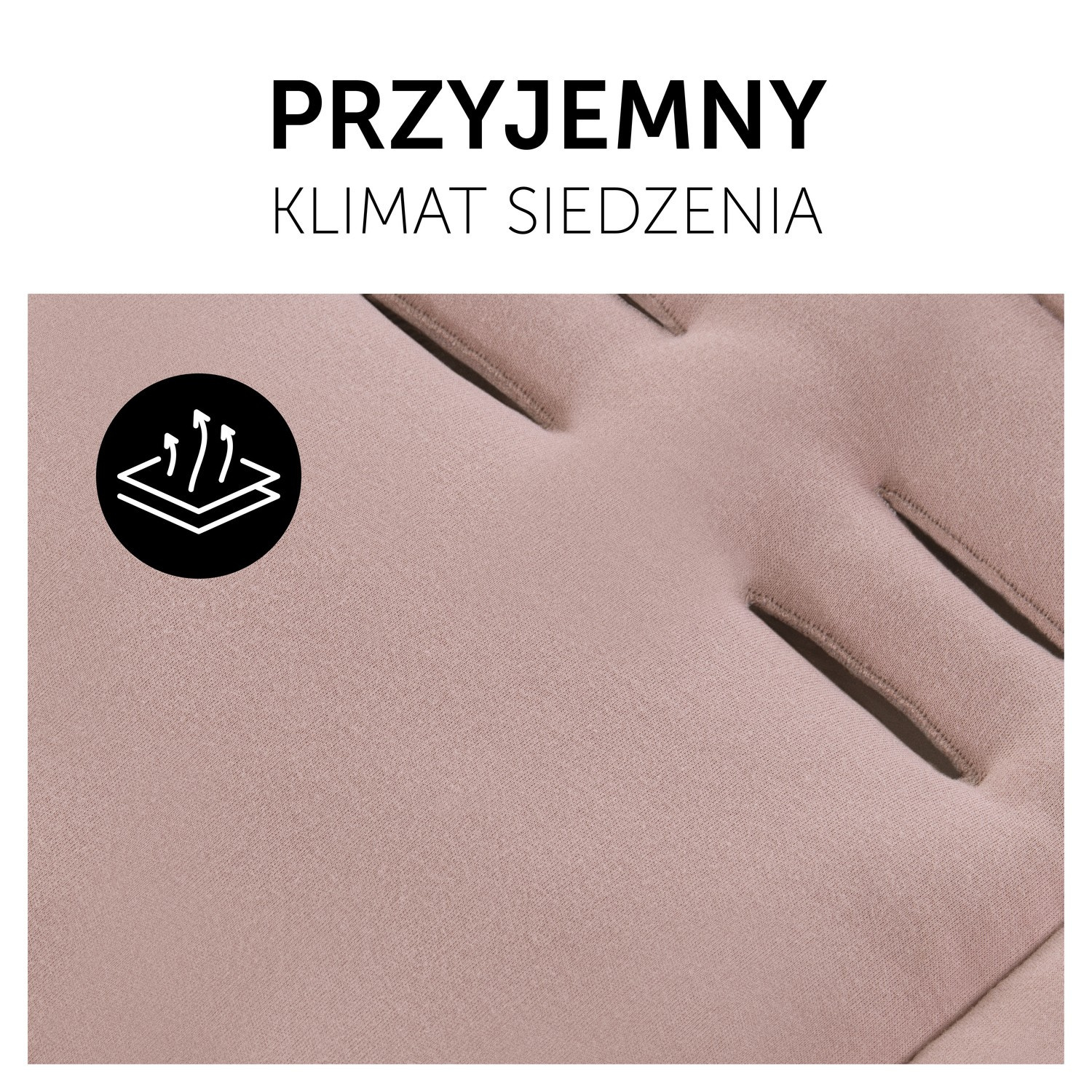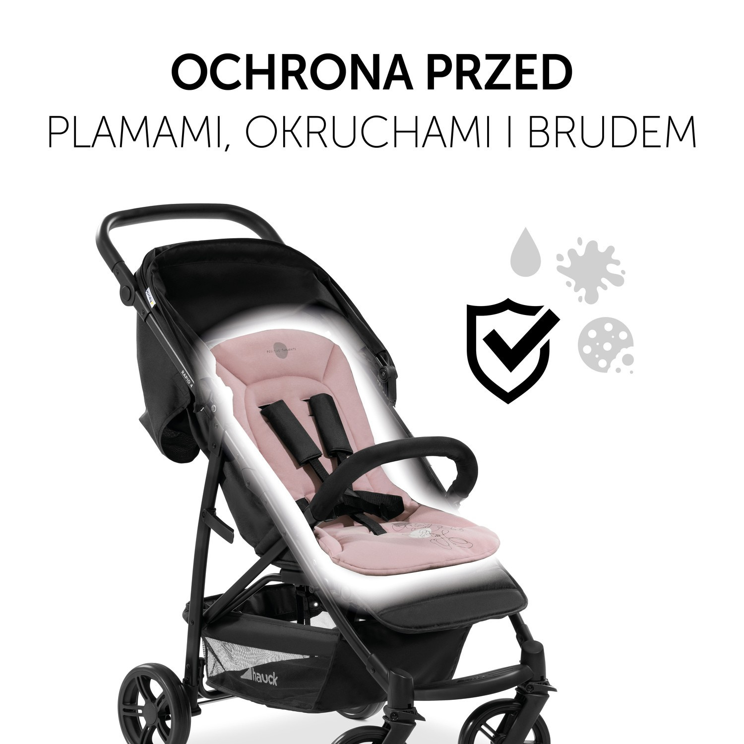Hauck wkładka do siedzenia spacerówki, wykonana z wysokiej jakości dżerseju bawełnianego, zapewnia dziecku przyjemny klimat siedzenia o każdej porze roku. Tkanina ta oddycha i reguluje poziom wilgotności. Wkładka zapobiega nadmiernemu gromadzeniu się ciepła i poceniu się dziecka w spacerówce i jest przyjemna dla delikatnej skóry, zarówno w ciepłe, jak i chłodne dni.