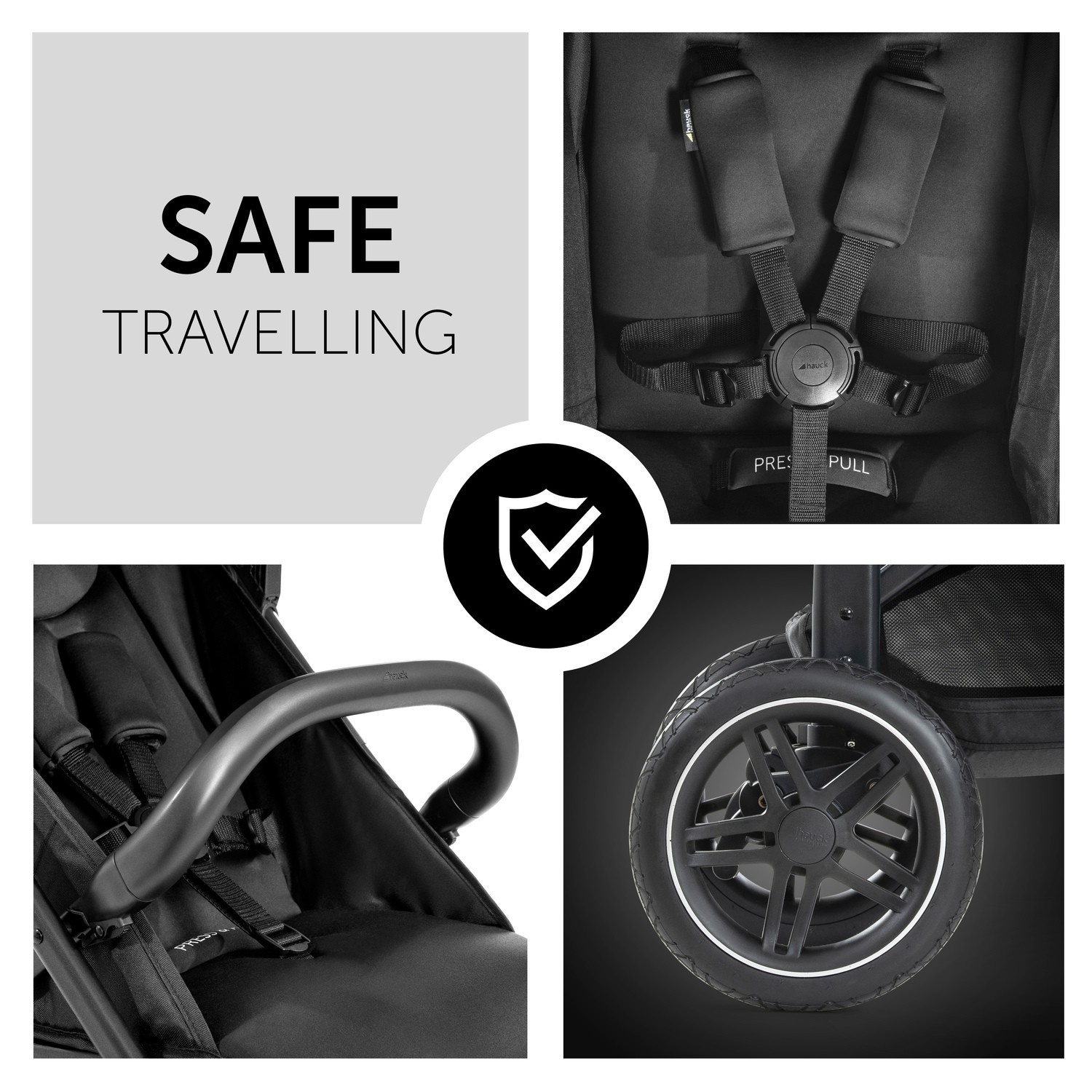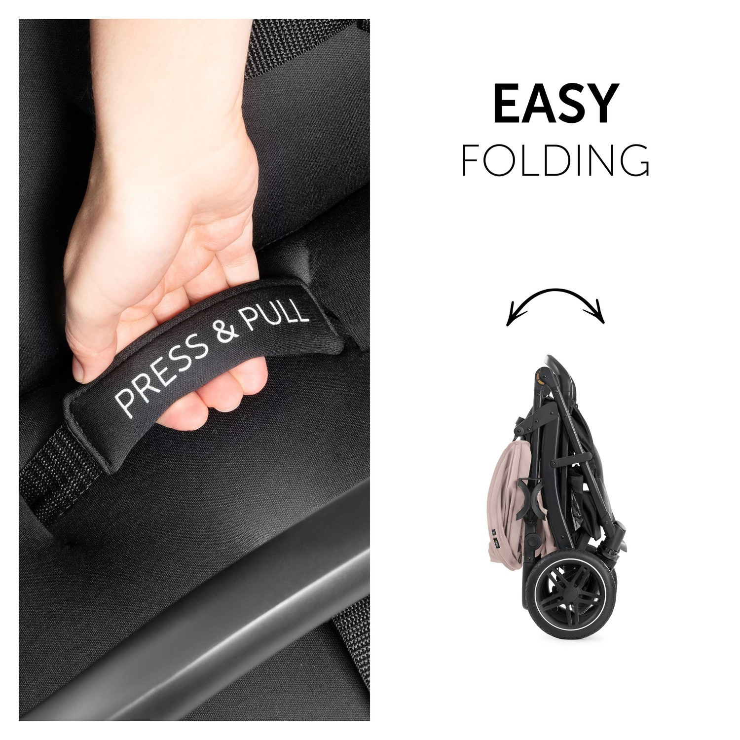 STYLOWA SPACERÓWKA DO MIASTA I NA ŁONO NATURY Z wysokiej jakości wyposażeniem oraz nowoczesnymi, zaokrąglonymi liniami Rapid 4D jest bardzo stylowy. W mieście czy na łonie natury – duże, odporne na przebicia koła na każdy teren jadą płynnie, miękko amortyzując nierówności podłoża. Zwrotne o 360° przednie koła umożliwiają łatwą i szybką zmianę kierunku, dając się jednocześnie prosto zblokować w razie potrzeby. Dzięki systemowi „Press & Pull” z obitą rączką do transportowania spacerówkę można złożyć jednoręcznie i szybko do małych rozmiarów, wnieść do autobusu oraz odstawić. Druga ręka jest zawsze do dyspozycji dziecka. Spacerówka wyróżnia się atrakcyjnym wyposażeniem i pierwszorzędnymi funkcjami. Wysokiej jakości, odporne na zniszczenie materiały, z których wykonane są daszek z filtrem UV 50+ oraz obszerne siedzisko przyciągają wzrok. Oparcie daję się płynnie regulować aż do płaskiej pozycji leżącej. Regulowana w wysokości rączka z uchwytem na napój jest idealna dla rodziców o dużej różnicy wzrostu, dbając o ergonomię pleców podczas pchania wózka. W porównaniu z innymi spacerówkami Rapid 4D może być dłużej użytkowany. Siedzisko wraz z koszem mogą być obciążane do 25 kg. Dzięki temu twoje dziecko jeździ w wózku bezpiecznie i wygodnie do ok. 4 lat. Materiał podnóżka oraz powierzchnia pałąka ochronnego są łatwe w pielęgnacji. Twoj Rapid 4D wygląda szybko na powrót wypielęgnowany, nawet jeśli siedziały w nim klejące rączki czy obłocone nóżki. Do wsiadania lub wysiadania możesz prosto przesunąć pałąk na bok lub zdjąć go. 5-punktowe zapięcie oraz białe linie na kołach, gwarantujące lepszą widoczność w ciemności, zapewniają wszechstronną ochronę, dopełniając wysokiej jakości wyposażenie wózka Rapid 4D.