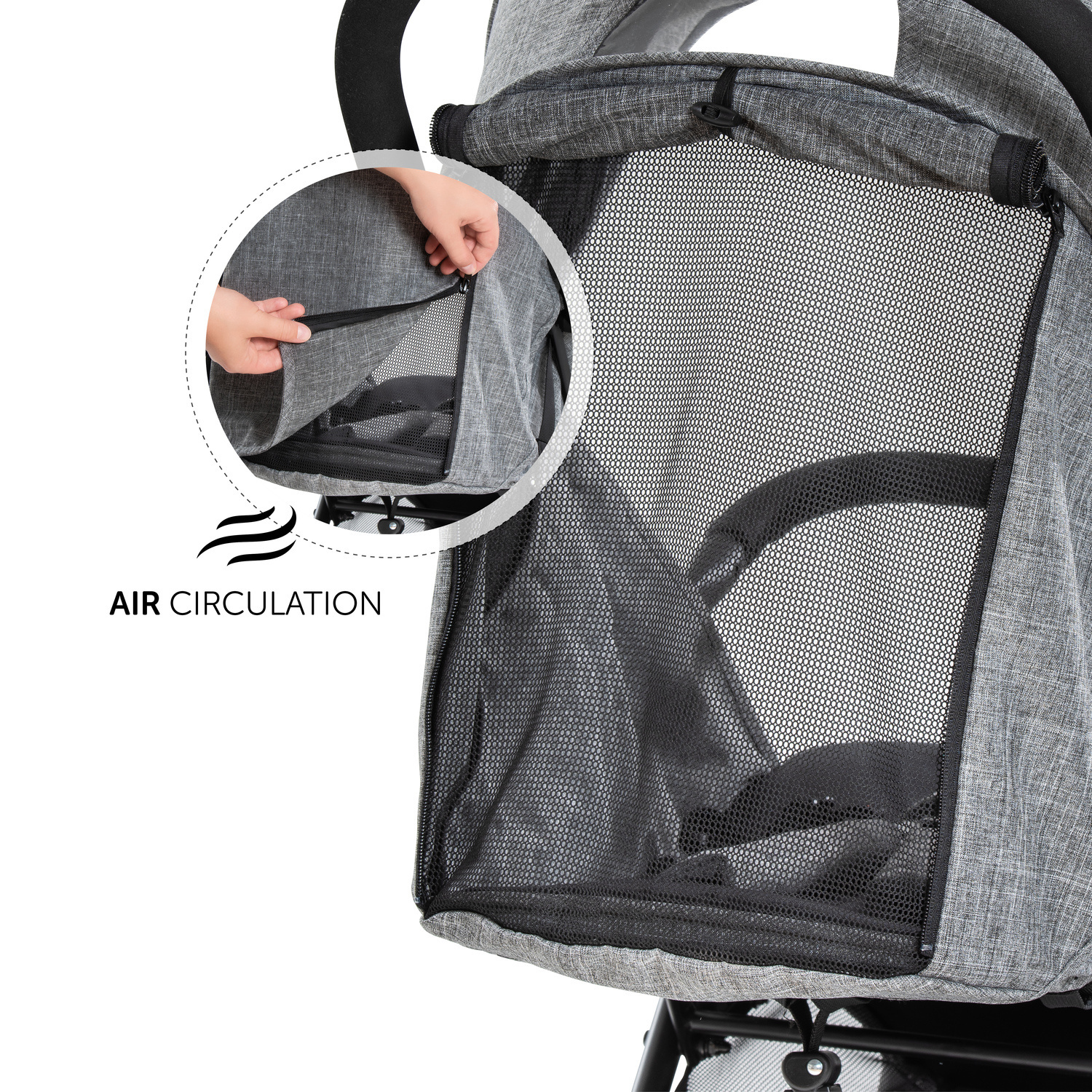 Ponadto duża budka z osłoną przeciwsłoneczną chroni Twoje dziecko przed każdą pogodą. Można ją swobodnie rozkładać, aby słońce, wiatr lub deszcz nie dostały się do małego odkrywcy. A gdy jest gorąco, wystarczy otworzyć zamek błyskawiczny, który odsłoni siateczkę dla lepszej wentylacji.