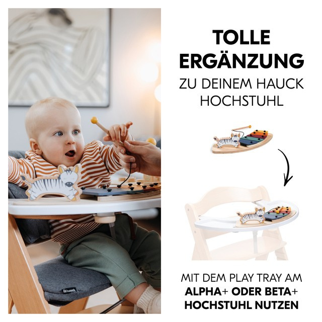 Chcesz zapewnić swojemu maluchowi więcej różnorodności i zabawy na wysokim krzesełku? Hauck Play Tray Play - zabawka instrument  muzyczny z urocza zebrą  do wysokich krzesełek Alpha & Beta jest idealnym dodatkiem do podstawy Play Tray i wnosi powiew świeżości do świata zabaw Twojego dziecka.