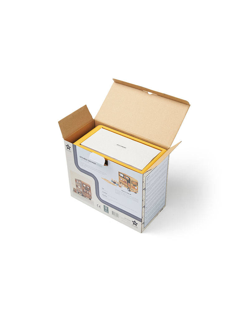 Wskakuj na pokład! Zajmij miejsce w piętrowym autobusie, wykonanym z drewna z certyfikatem FSC, który zabierze Cię na wycieczkę po mieście Aiden.