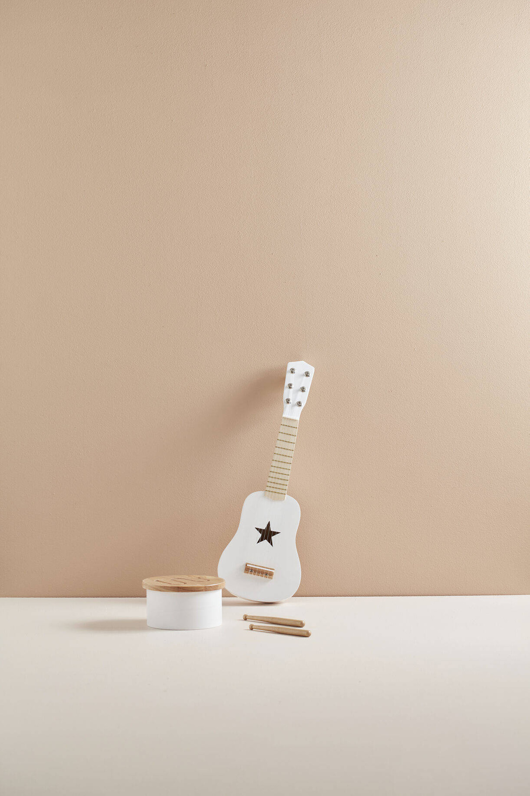 • Drewniana gitara zabawkowa z wycięciem w kształcie gwiazdy.