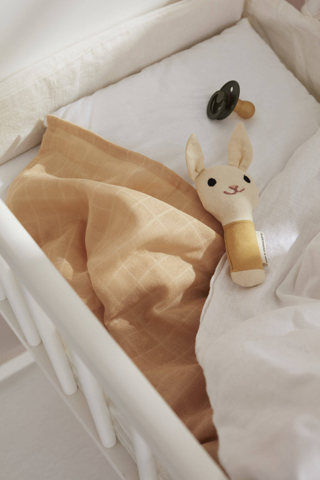 - Materiał Tkanina zewnętrzna: 100% bawełna z certyfikatem GOTS. Wypełnienie: 100% poliester. Grzechotka wewnętrzna: HDPE.