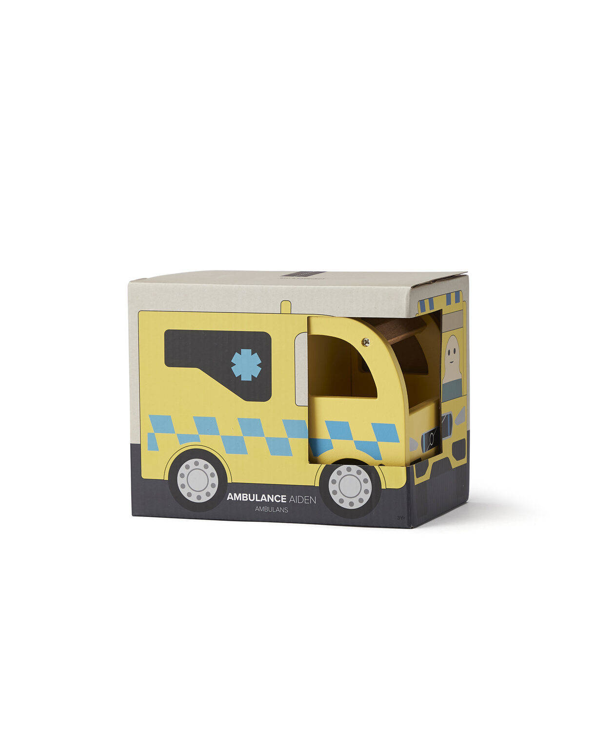 W tej drewnianej zabawkowej karetce spotkasz ratowników medycznych Jen i Jorgena oraz pechowego, ale cierpliwego Hana. Na szczęście w karetce są nosze z kółkami, na których Han może leżeć. Nosze można wtoczyć tylnymi drzwiami i zablokować na czas jazdy. Jen uwielbia prowadzić. Jorgen dobrze opiekuje się pacjentem, gdy pędzą do szpitala. Więc zapnij pasy i w drogę!
