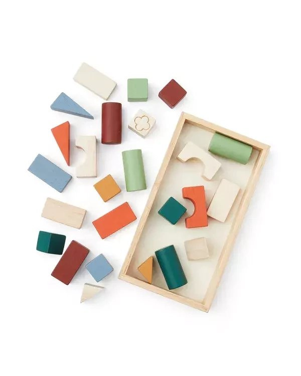 Zestaw 25 klocków o różnych kształtach wraz z drewnianym pudełkiem do przechowywania. Klasyczne klocki są idealne dla dzieci w każdym wieku, ponieważ mogą ćwiczyć umiejętności motoryczne i tworzyć wiele różnych rzeczy. Kolory inspirowane są wnętrzami Karin i Carla Larssonów na ich farmie w Lilla Hyttnäs w Dalarnie.