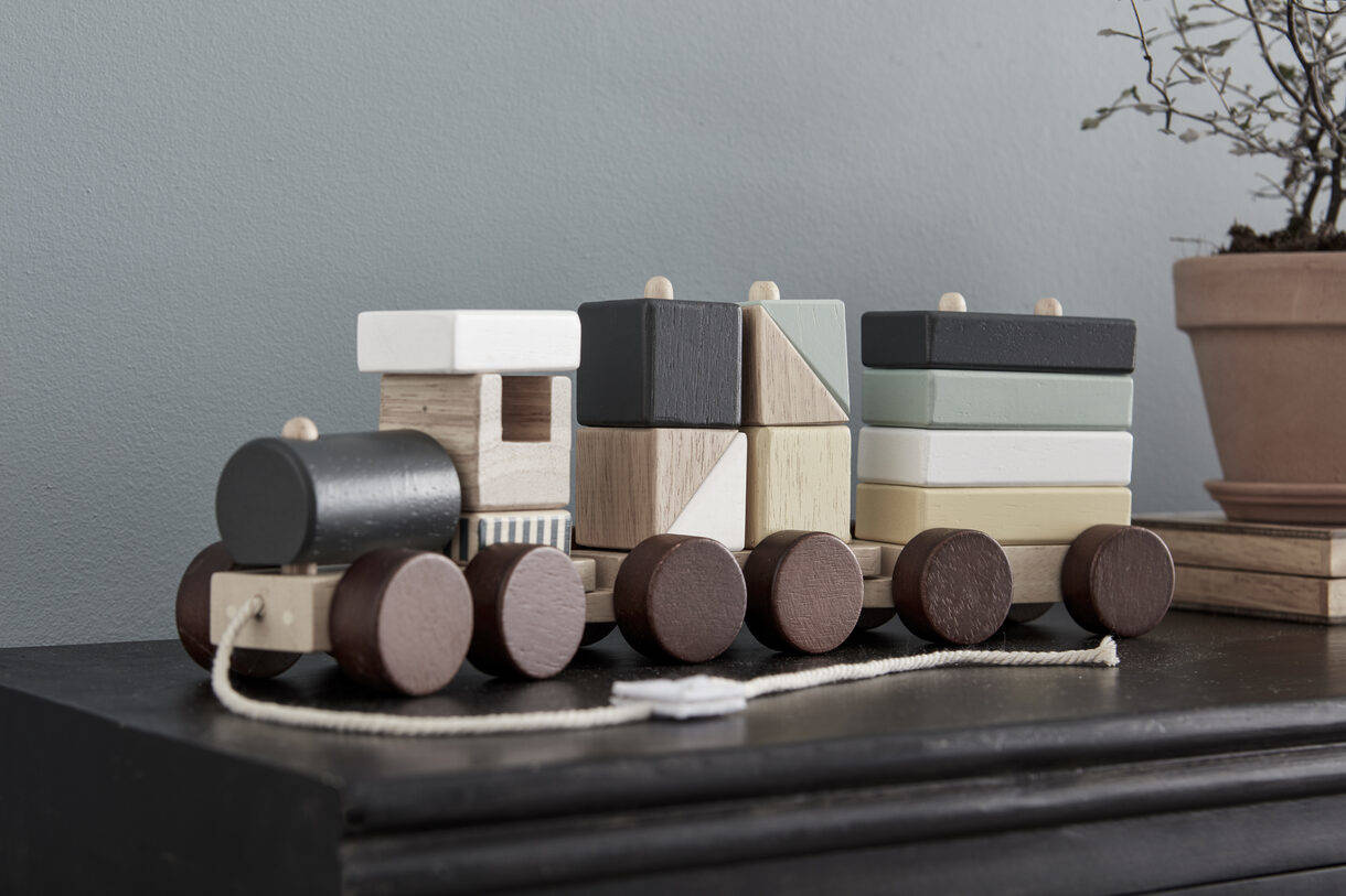Kid's Concept - Pociąg z klockami do ciągnięcia natural