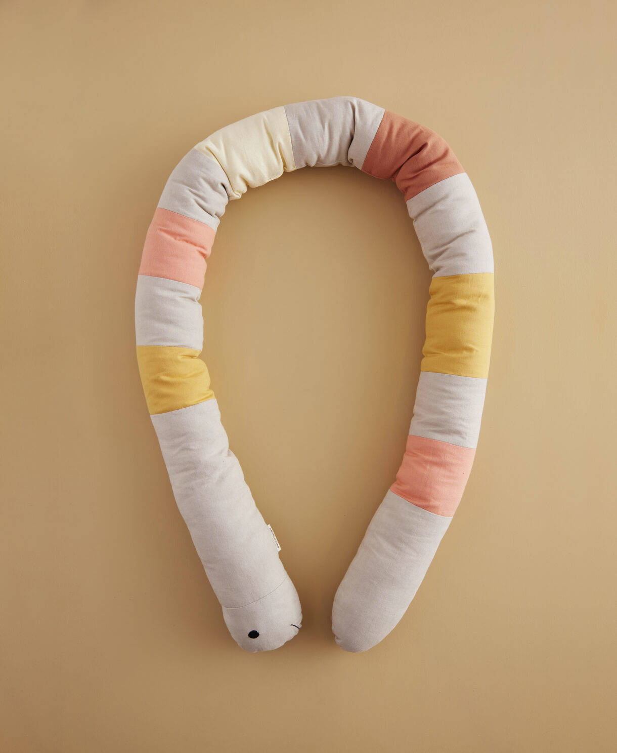 Przytulna długa poduszka w kształcie naszej dżdżownicy Meta to funkcjonalny przedmiot o wielu zastosowaniach.