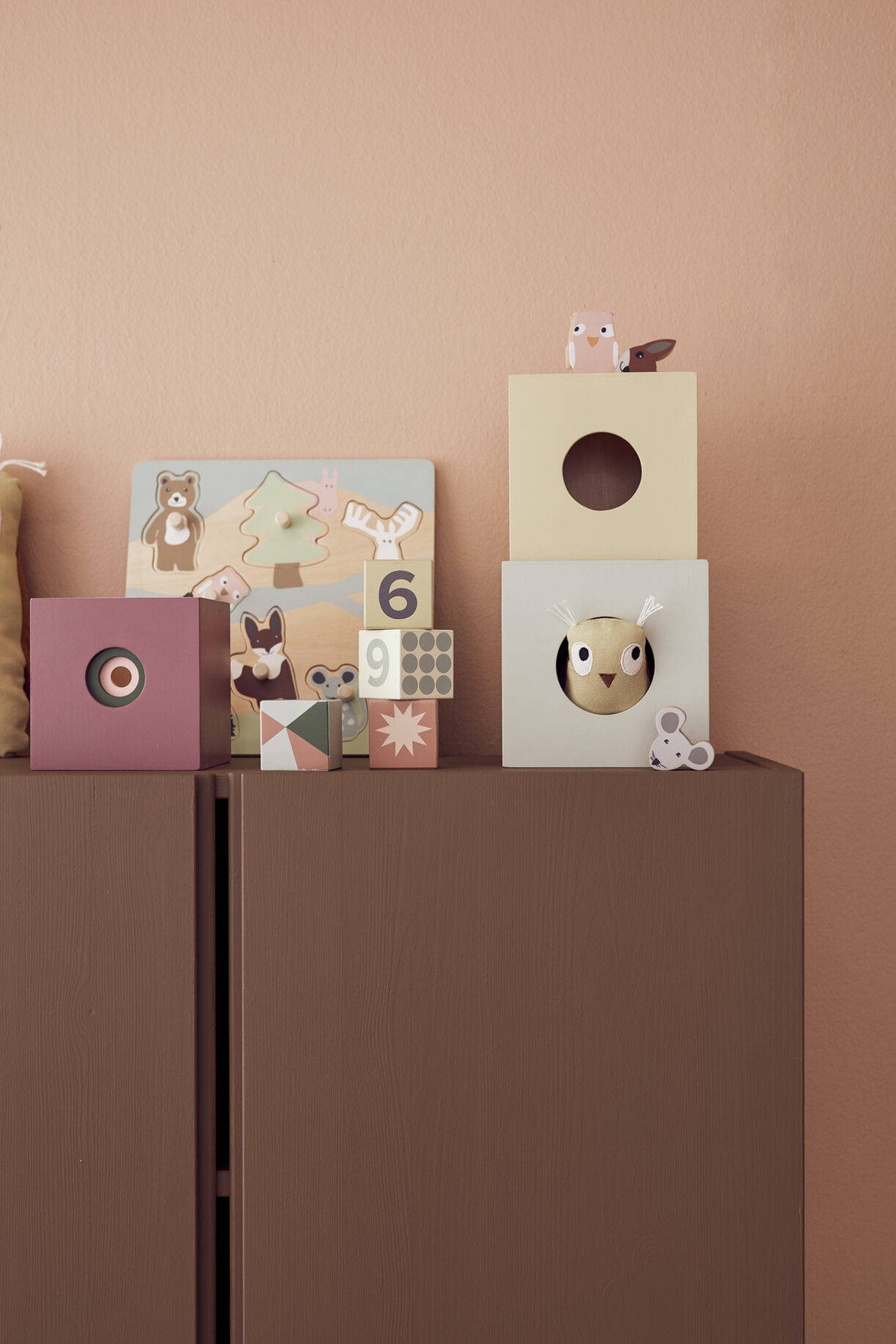 Jeż Stella, łosie Bo i Sue, miś Max, lis Ed, sowa Ola i mysz Tor czekają na Ciebie w tej siedmioczęściowej układance. Małe drewniane uchwyty przy puzzlach ułatwiają umieszczenie ich we właściwym miejscu. Układanie puzzli to świetne ćwiczenie usprawniające koordynację wzrokowo-ruchową i rozwijające motorykę małą. Przy okazji dziecko uczy się samodzielnie rozwiązywać problemy.