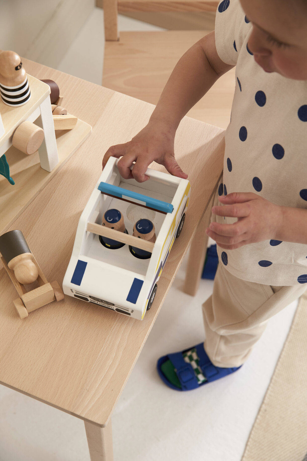 Dwaj policjanci, Mika i Bim, są uczciwi i lubią słuchać ludzi, także, gdy mówią o swoich problemach. Więc zazwyczaj wszystko układa się dobrze. Ale tak między nami, złodziej ma trudności z odróżnieniem dobra od zła. Na szczęście naszej policji w Aiden nigdy nie znudzi się zawracanie go ze złej drogi. Może, ale tylko może, złodziej wkrótce to zrozumie? Zarówno samochód, jak i figurki wykonano z drewna z certyfikatem FSC.