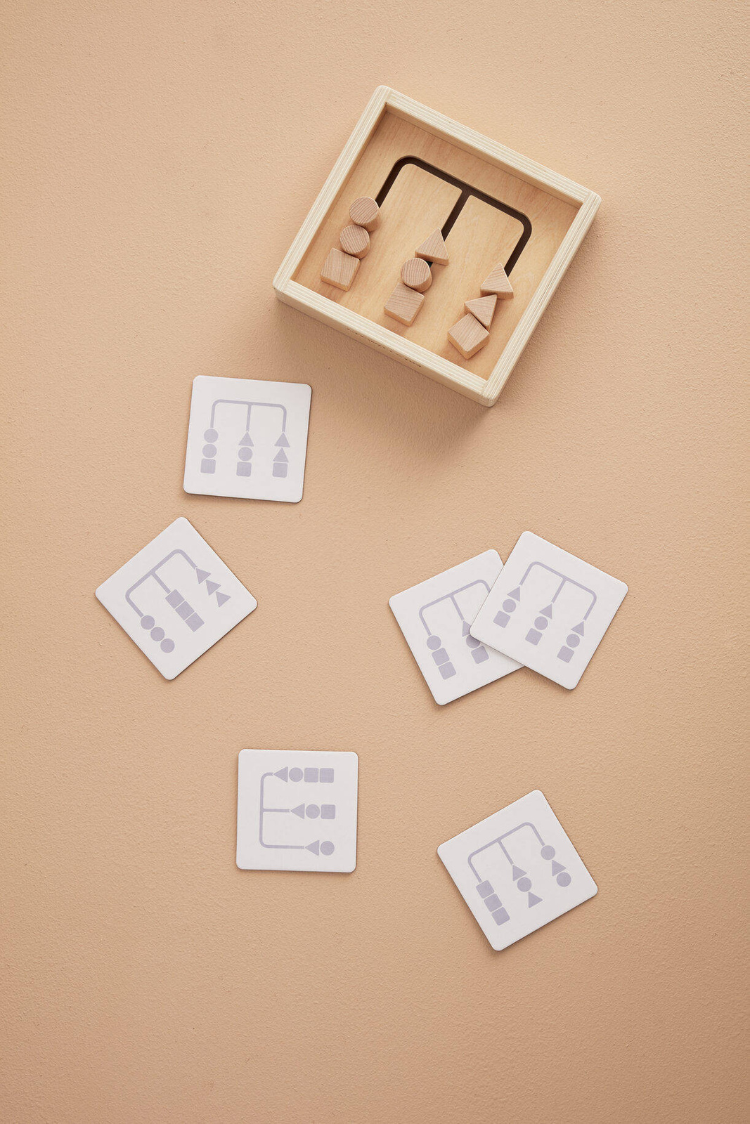 Do tablicy dołączonych jest sześć dwustronnych kart z kolorami po jednej stronie i różnymi kształtami po drugiej. Wybierz jedną z kart i odtwórz obrazek na tablicy. Kiedy już uda Ci się odtworzyć rysunki ze wszystkich kart, zabawa wcale się nie skończy. Możesz sam wymyślić nowe wzory z koralików lub figur! Zostań małym geniuszem! Tablica kolorów i kształtów rozwija zdolności motoryczne dziecka i uczy rozwiązywania problemów.