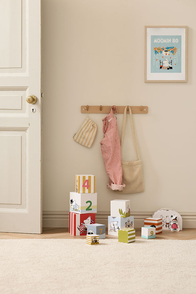 - Kartonowy zestaw kostek inspirowany światem Muminków. Do układania wieży lub piramidy i zabaw edukacyjnych.
