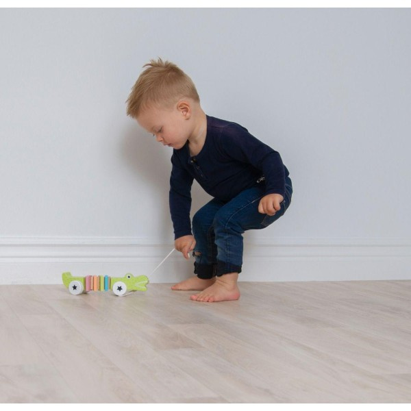 Tęczowy, kolorowy krokodyl do ciągniecia na sznurku skandynawskiej marki Jabadabado stanie się nieodzownym kompanem pierwszych spacerów. Idealny do nauki kolorów, jak rózwnież zachęcający do aktywności ruchowej maluchów, sprzyjającej rozwojowi koordynacji. Ta klasyczna zabawka do ciągniećia na sznurku, idealnie nadaje się na pierwsze pupila domowego. Drewniany krokodyl wspomaga rozwój dużej motoryki, uczy także zależności przyczyna-skutek.