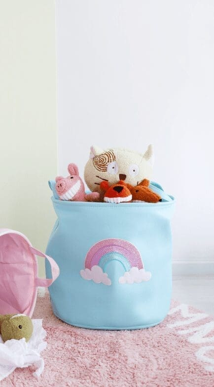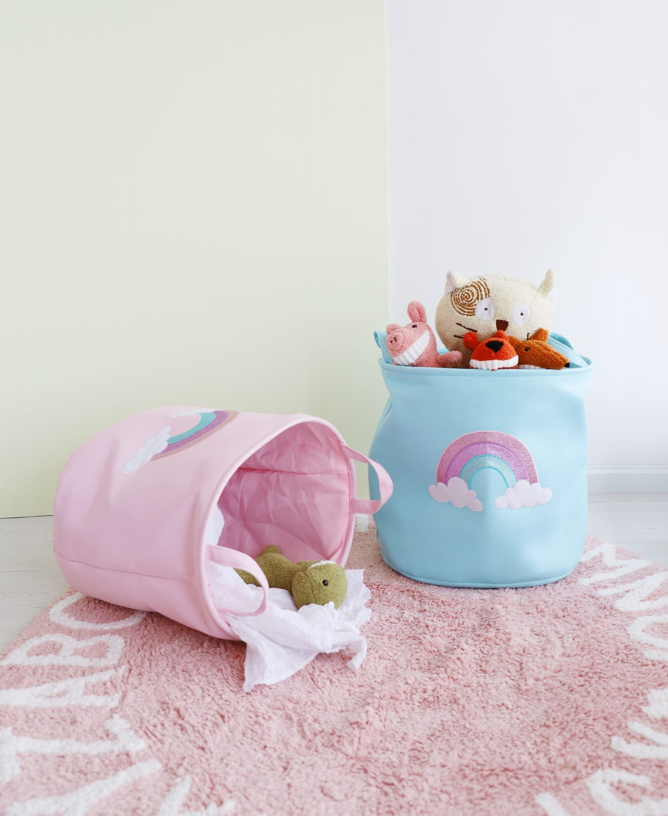 Uroczy kosz na zabawki. Idealny do przechowywania dziecięcych akcesoriów, tekstyliów i zabawek. Pięknie ozdobi każde wnętrze. Kosz posiada wygodne uchwyty do przenoszenia. Zdecydowanie pokocha go każde dziecko. Specyfikacja: Materiał: 85% bawełna, 15% poliester Wymiary: 40 x 40cm