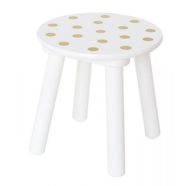 Urocze drewniane krzesełko, taboret biały w złote kropki skandynawskiej marki Jabadabado to oryginalne uzupełnienie wyposażenia pokoiku dziecięcego. Jego ciekawy wygląd zachwyci każdego, zarówno tych młodszych jak i starszych. Idealnie będzie pasował do dziecięcych wnętrz, jako dodatek dekoracyjny oraz funkcjonalny taboret - do siedzeniea, czy też jako mini stolik.