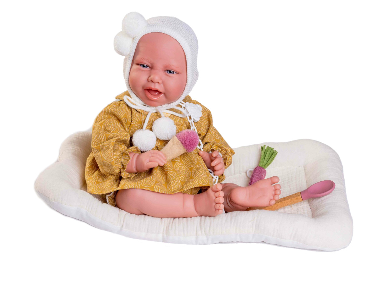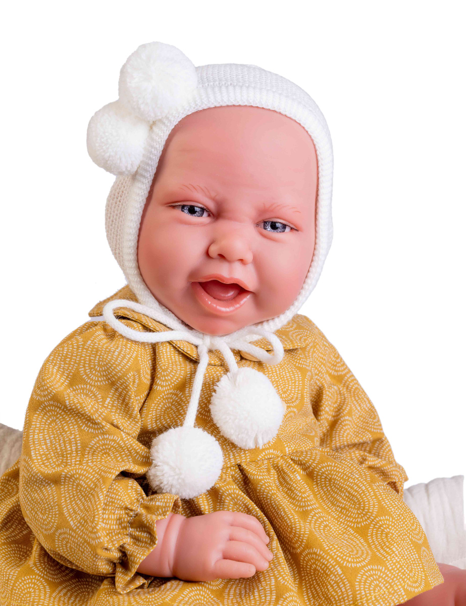 Kolejną nowością 2023 będzie hiszpańska lala o imieniu Carla 33344. Dziewczynka ma 42 cm wysokości i jest jedną z większych lal. Carla świetnie się bawi na swoim mięciutkim beżowym kocyku, a dodatkowo nosi świetnie pasującą wiązaną czapkę z czterema zabawnymi pomponami.