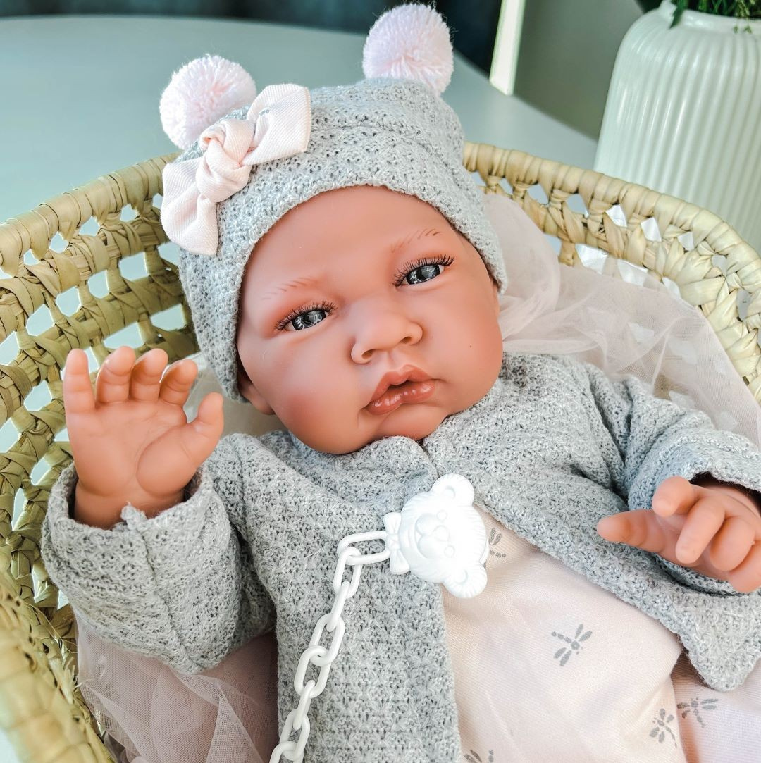 Antonio Juan to jedna z najbardziej rozpoznawalnych hiszpańskich marek specjalizujących się w produkcji lalek z pięknymi buźkami. Wśród proponowanych modeli znajdziesz bobasy z rzeźbieniami na główce zamiast włosów do zabawy maluchom, lalki do kąpieli, dziewczynki z długimi włosami do czesania i wiele innych. Wszystkie lale wykonane są z wysokiej jakości materiałów: z miękkiego i delikatnego winylu lub z brzuszkiem wypełnionym wyściółką z wełny. Produkty posiadają wszelkie certyfikaty bezpieczeństwa CE. Lalki w całości wyprodukowane zostały w Hiszpanii.