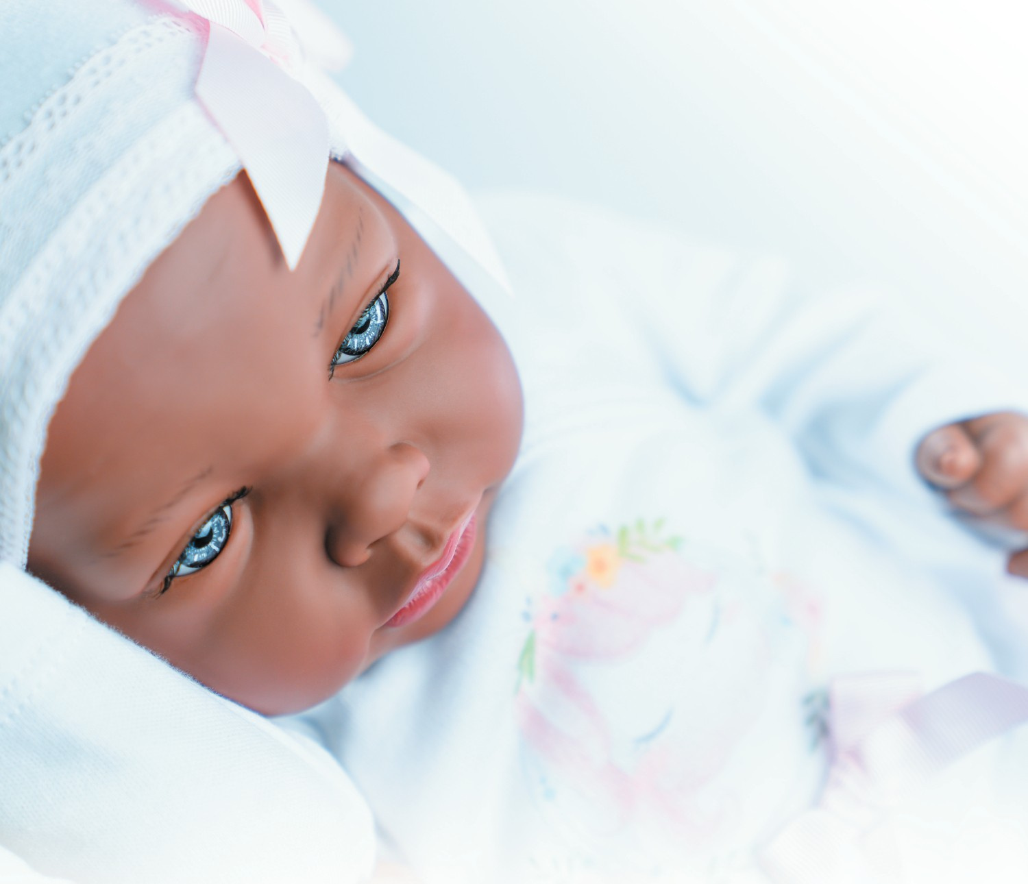 Czarnoskórą Galę wykonano z dbałością o każdy szczegół. Dokładnie odwzorowane zostały rysy i naturalny wyraz ślicznej twarzy niemowlaka, linie papilarne, fałdki oraz paznokcie. Zachwycają rumiane policzki i lśniące usta. Kończyny i głowę wykonano z gładkiego, miękkiego i bezpiecznego dla dzieci winylu, a tułów uszyto z mięciutkiego materiału wypełnionego miękką wyściółką. Ruchome ręce i nogi pozwolą na przybranie pozycji niczym jak u prawdziwego dziecka, ponieważ kończyny obracają się i to czyni lalę bardziej realistyczną.