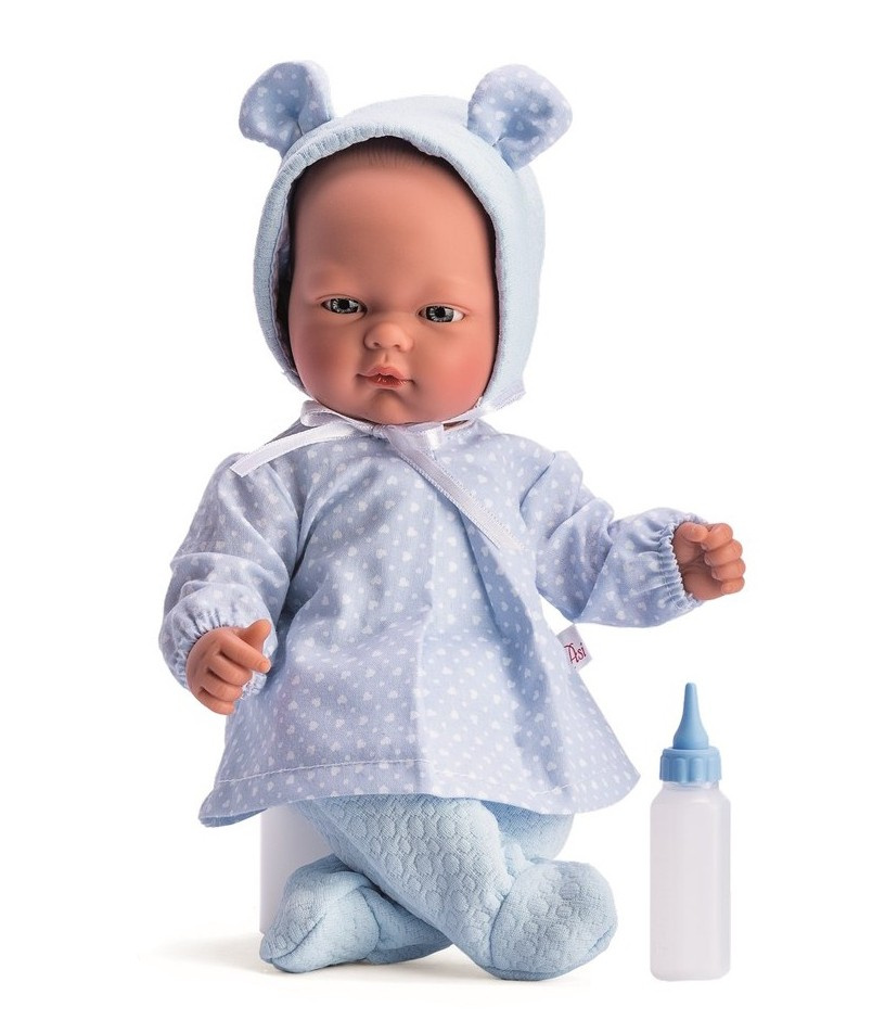 Kolejny chłopiec 0456741 urozmaici nową kolekcję hiszpańskiej marki Asi. Bobas ma 30 cm wysokości i został wykonany na podobieństwo noworodka. Niebieskie oczy lali zostały namalowane ręcznie, z kilku warstw. Lalka nie ma rzęs ani brwi, a oczy się nie zamykają. Na główce ma żłobienia, a powierzchnię delikatnie przyciemniono, aby jeszcze bardziej przypominała główkę noworodka.