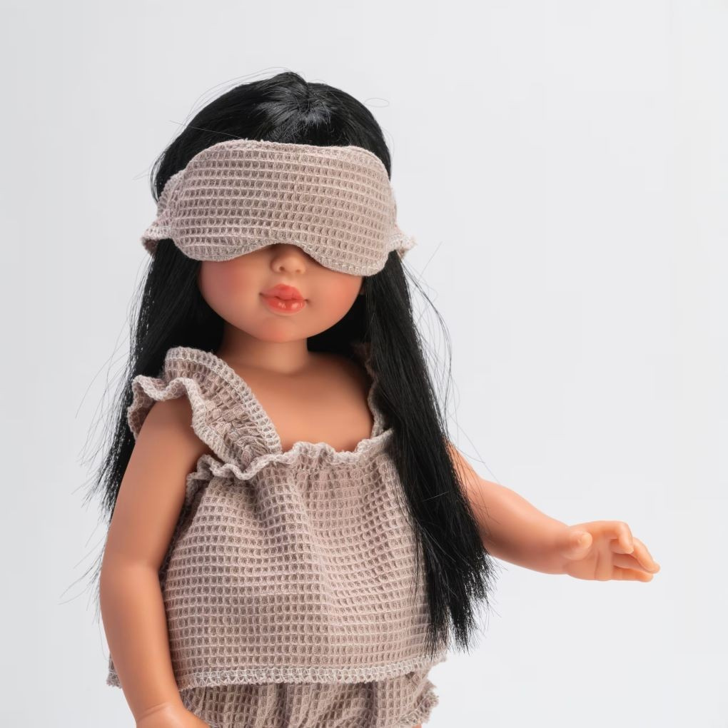 Przeznaczona dla dzieci w wieku od 3 lat, lalka hiszpańska Asi 0517670 urzeka stylowym strojem. Dwuczęściowa piżamka w kakaowym kolorze została uszyta z najwyższej jakości tkaniny o ciekawej fakturze. W komplecie opaska na oczy.